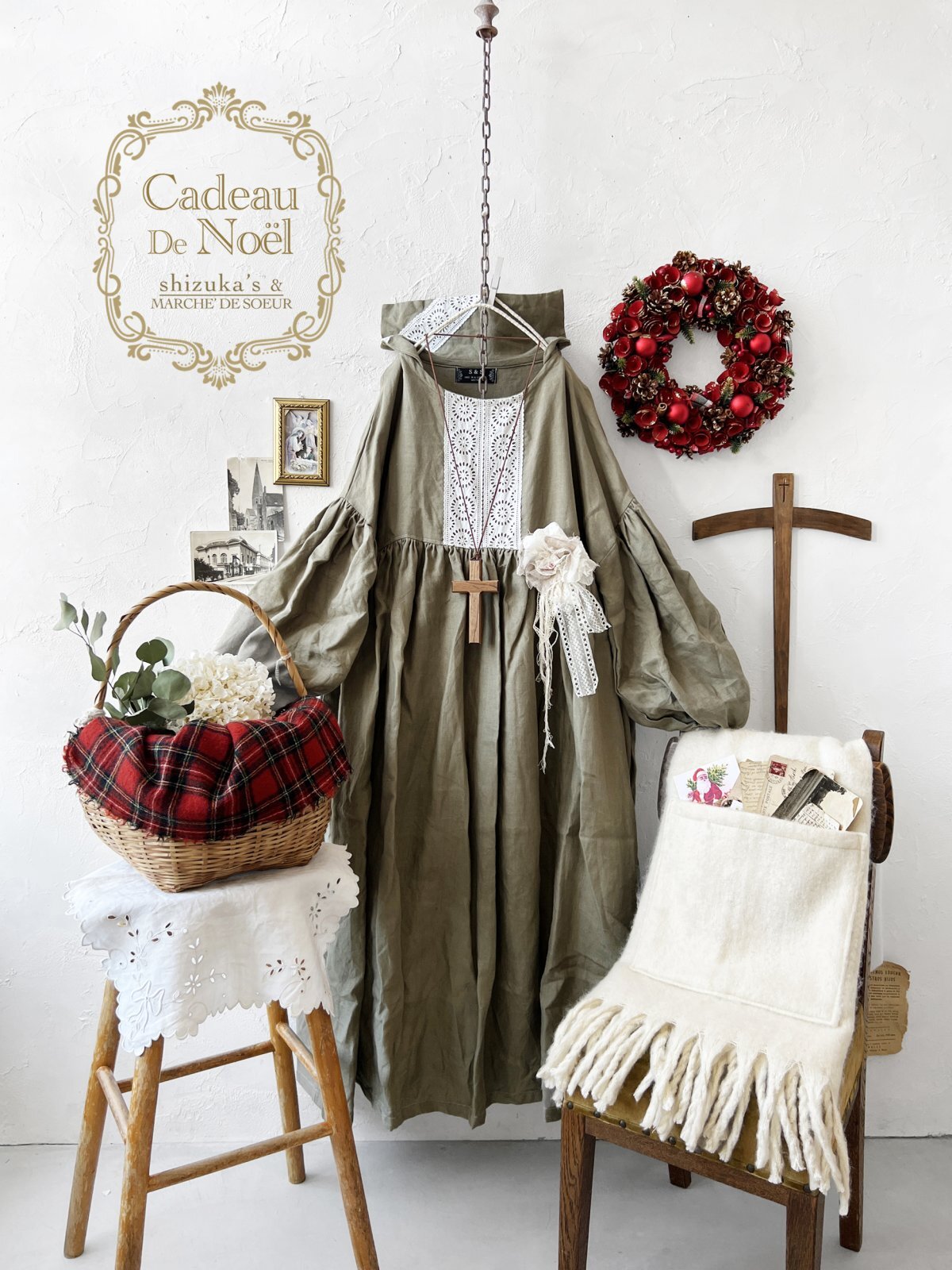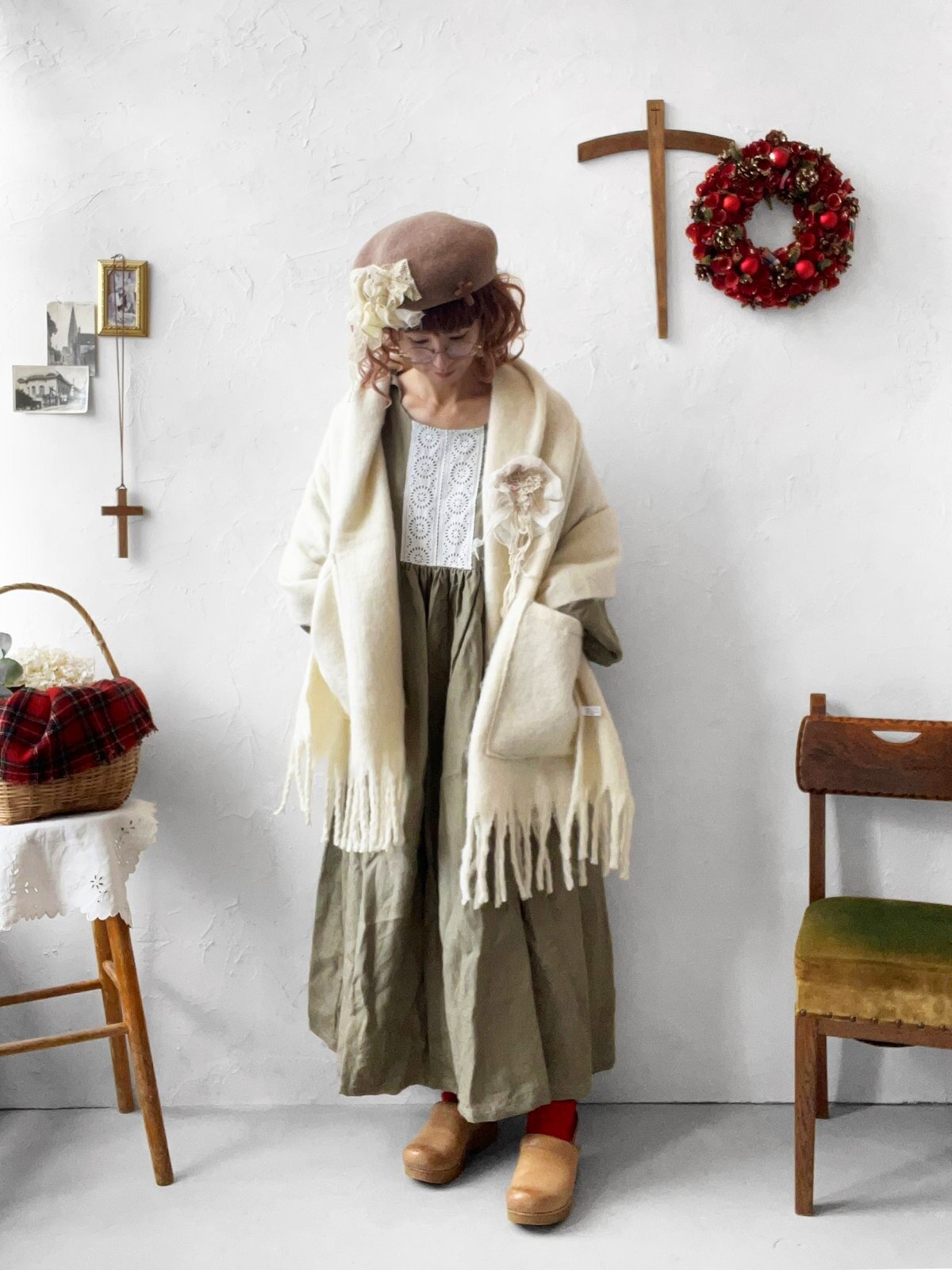 ▼お洋服とショールの2点以外の、撮影で使用している小物は付きません。