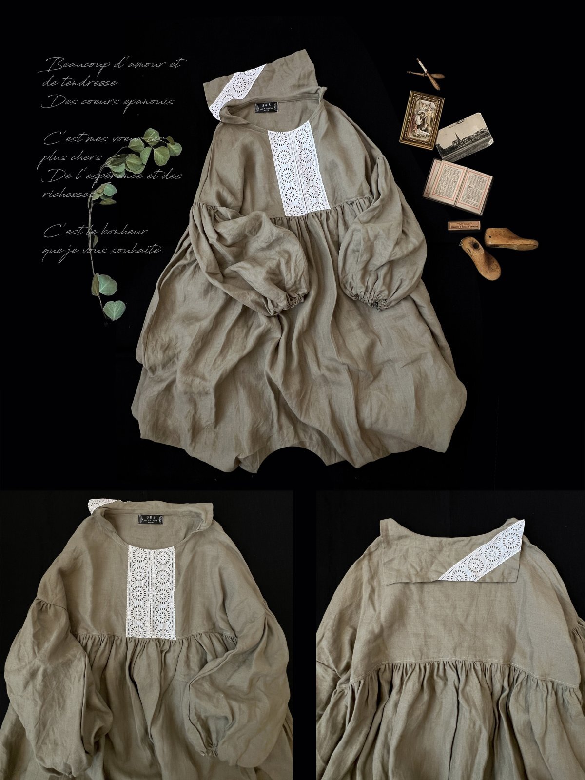 (1)shizuka's セーラー襟のレースワンピース・カーキ