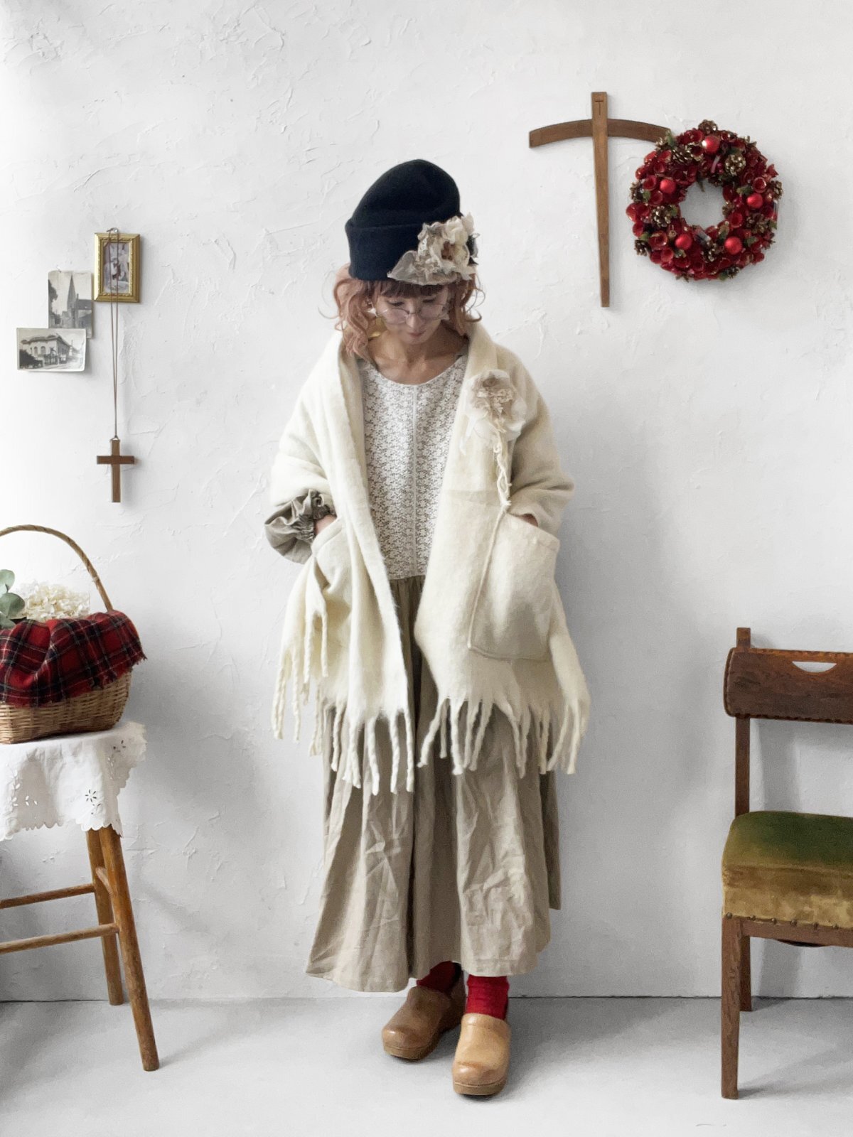▼お洋服とショールの2点以外の、撮影で使用している小物は付きません。