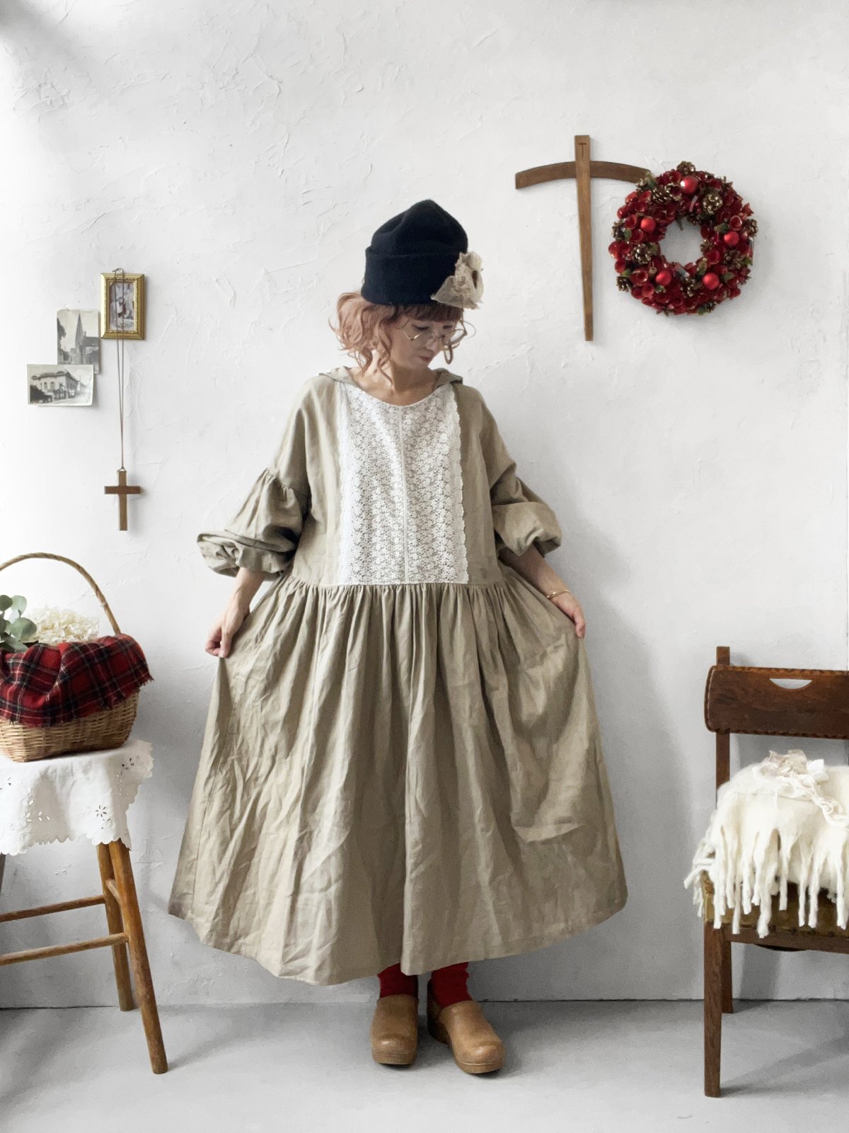 (1)shizuka's セーラー襟のレースワンピース・アッシュベージュ