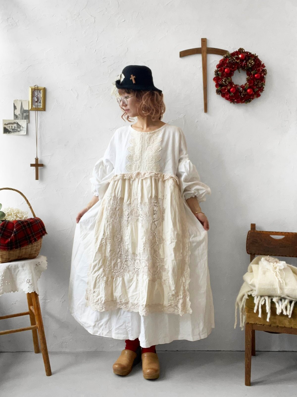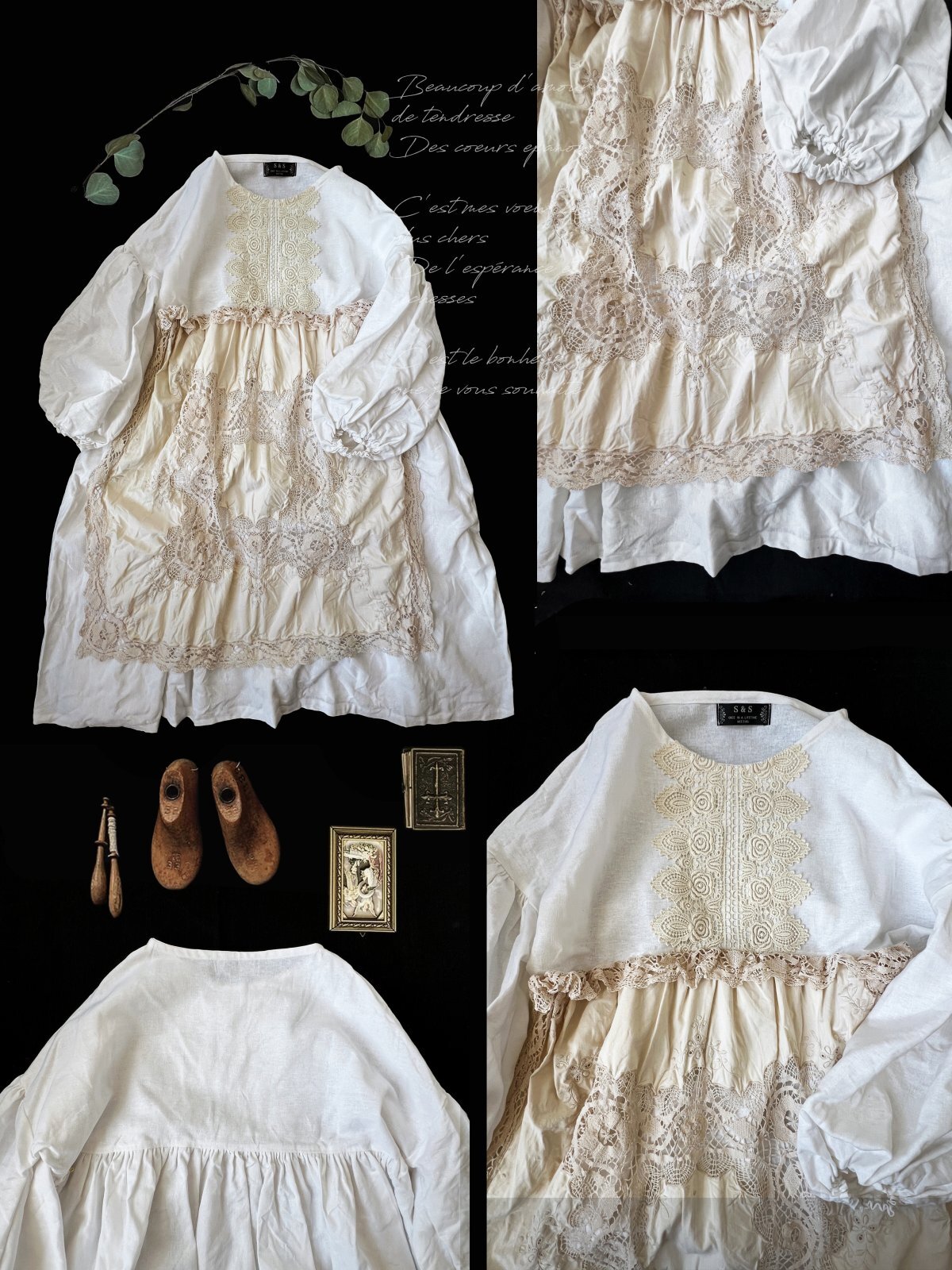 お洋服はすべてデザインが違う1点もの。アンティークレースや