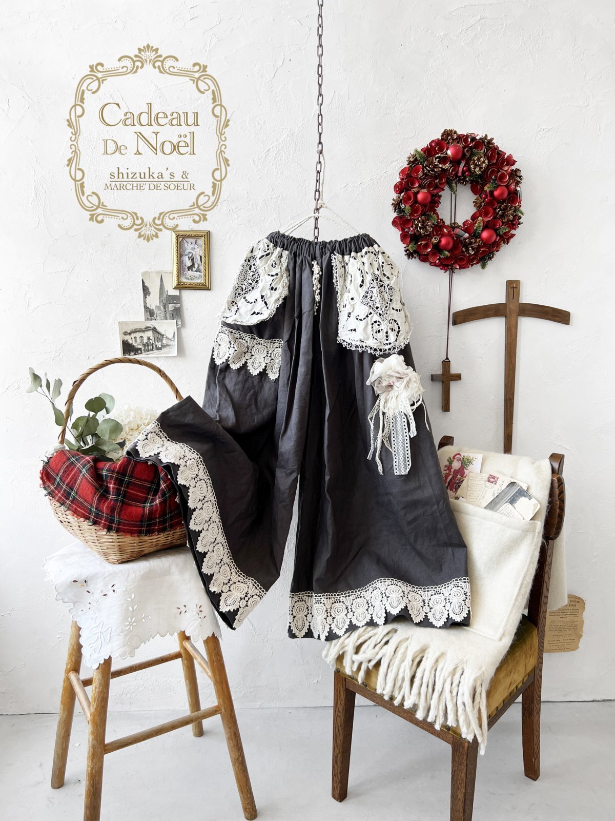 【ノエルの贈り物】レースのガウチョパンツ・ダークグレー【9】 [SIZ251211]