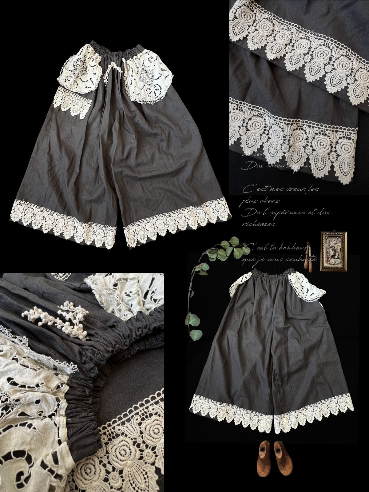 【ノエルの贈り物】レースのガウチョパンツ・ダークグレー【9】