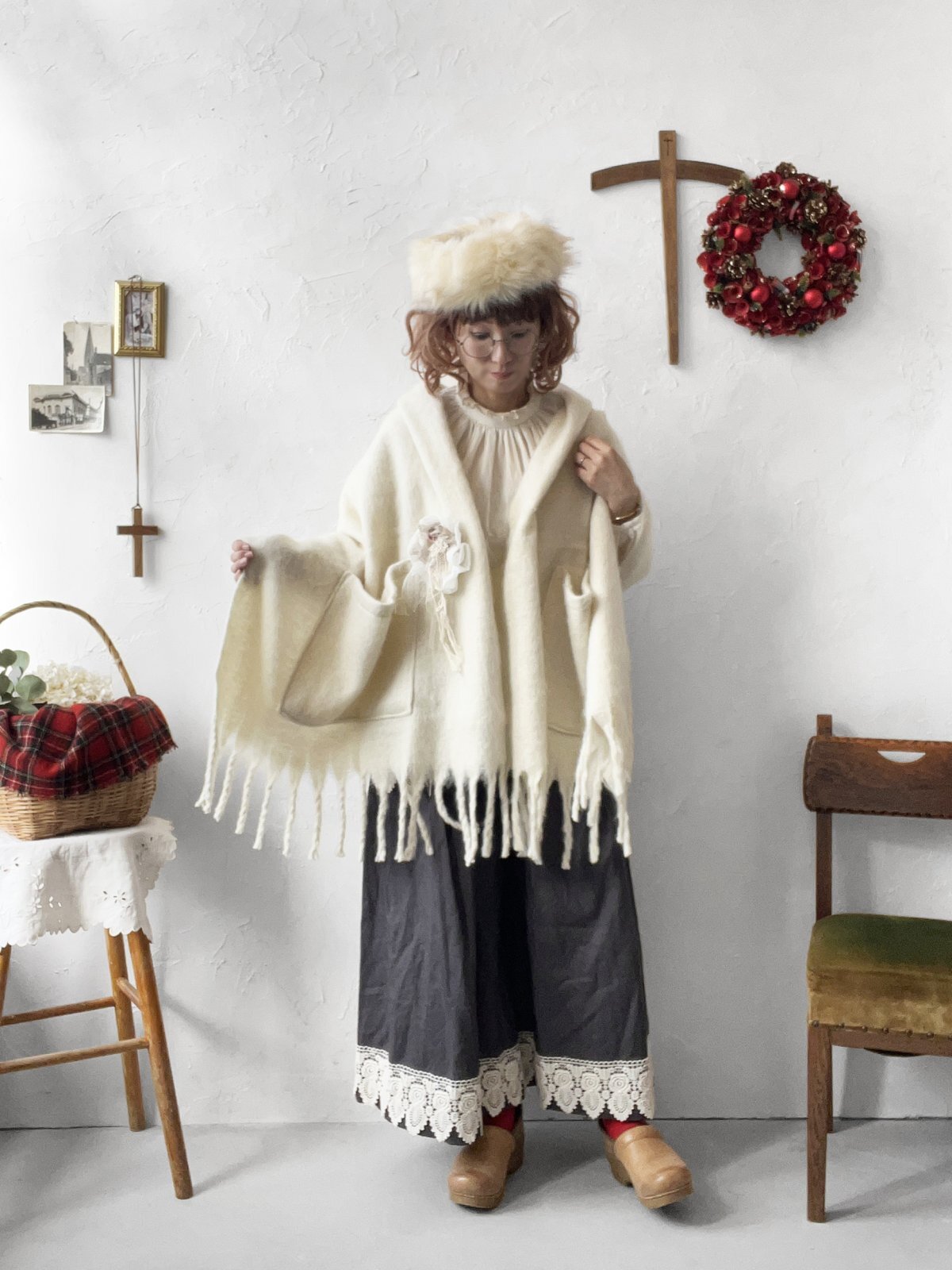 ▼お洋服とショールの2点以外の、撮影で使用している小物は付きません。