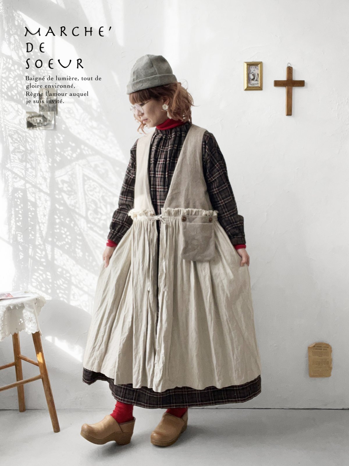 MARCHE' DE SOEUR/ウールツイードのベストワンピース・ベージュ×生成り [MDS251221]