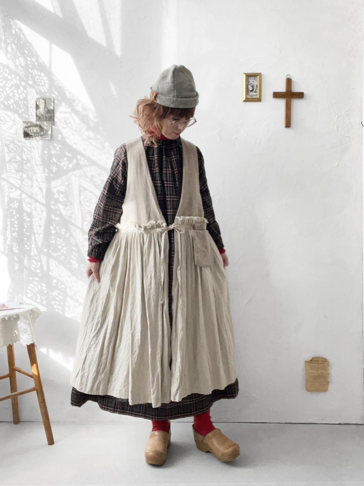 ベーシックなヨーロッパリネンのベストワンピースです。