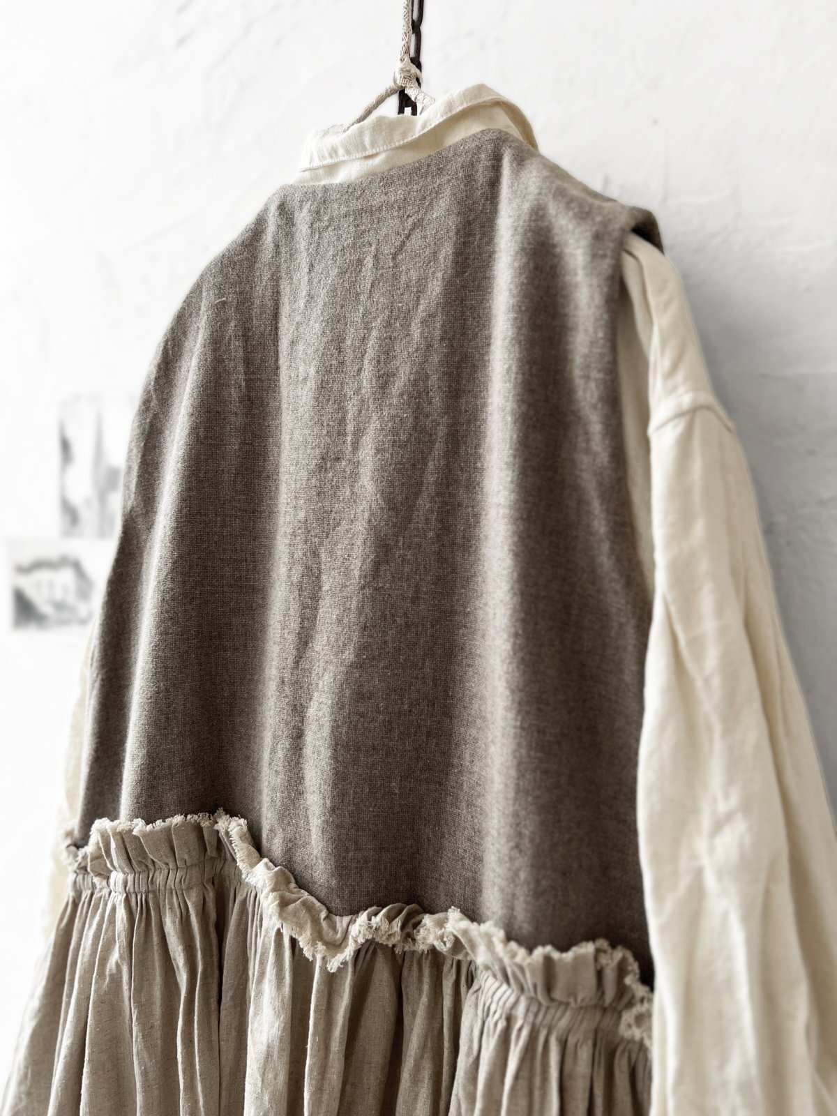 ベスト部分は尾州のエターミンウールツイード、スカート部分は