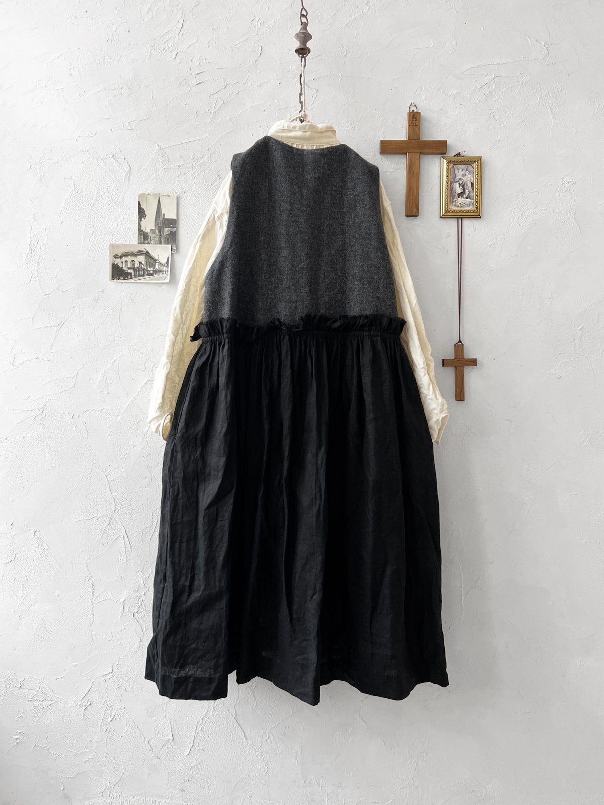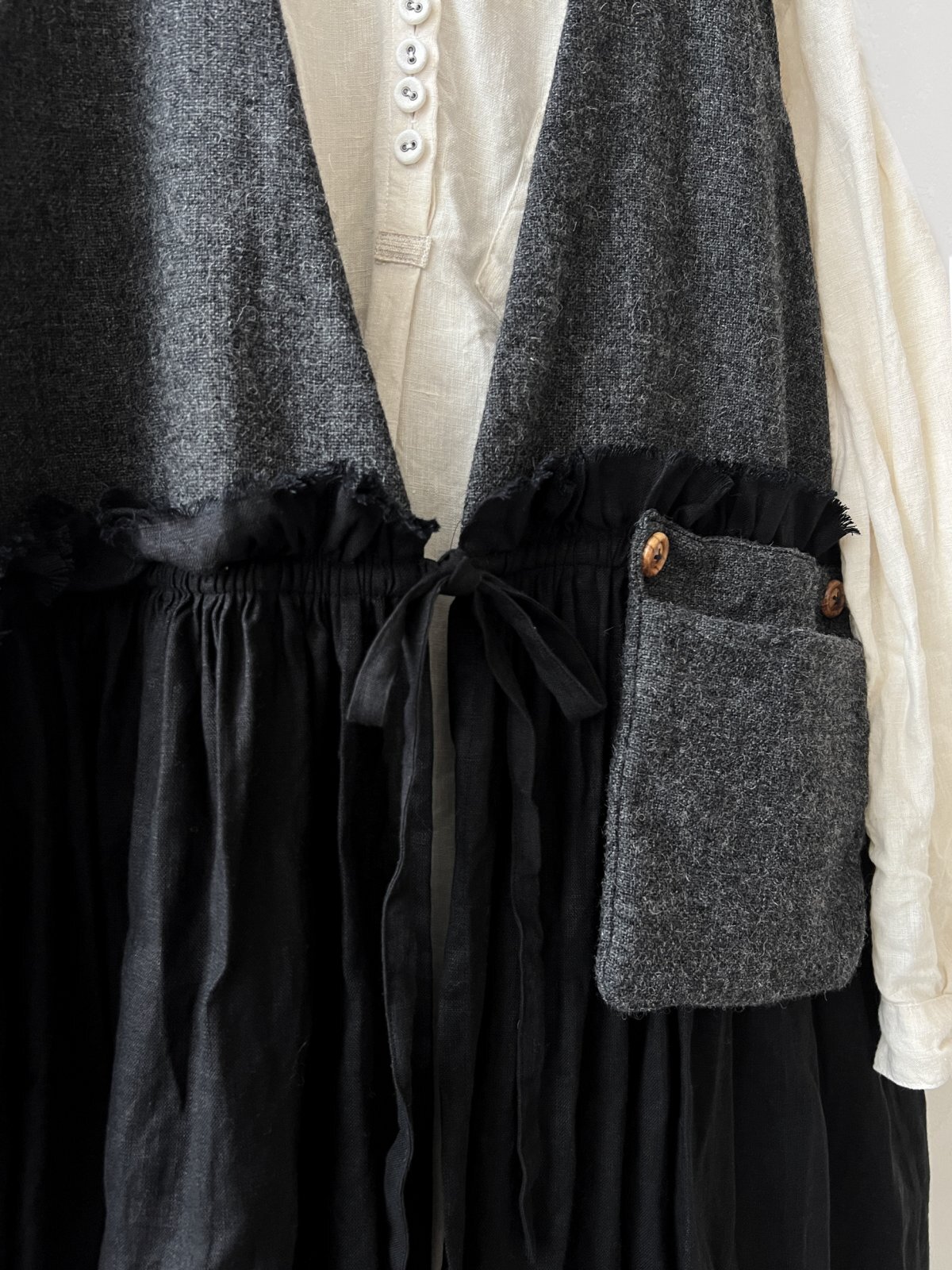 ベスト部分は尾州のエターミンウールツイード、スカート部分は