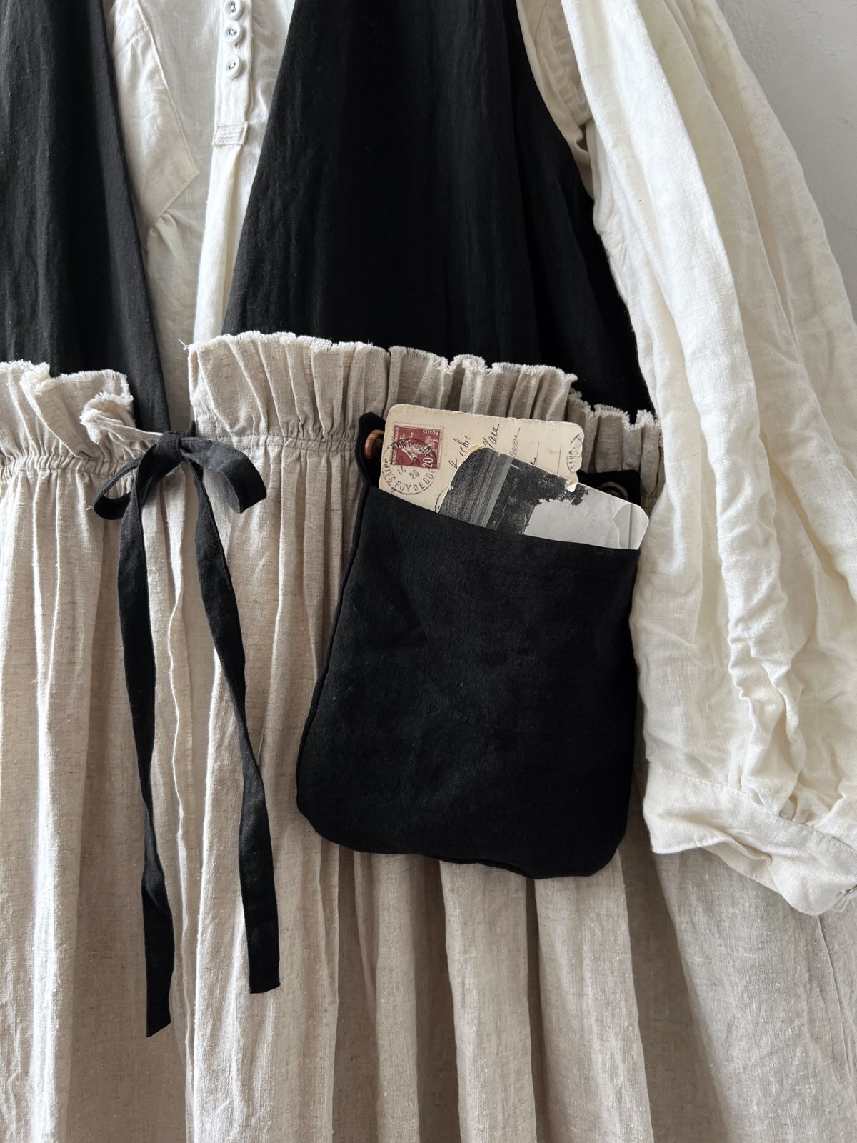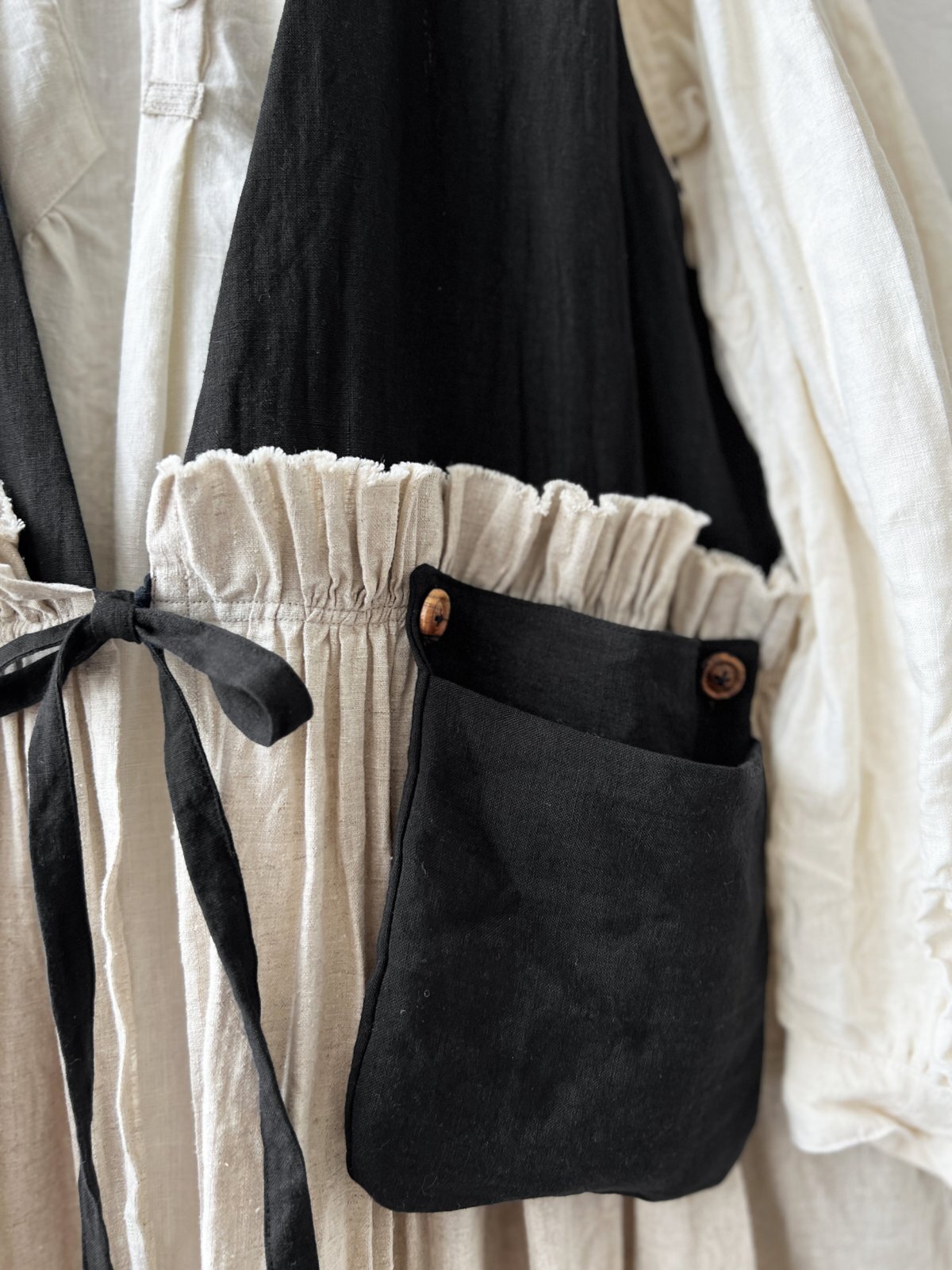 MARCHE' DE SOEUR/リネンのベストワンピース・黒×生成り [MDS251202]