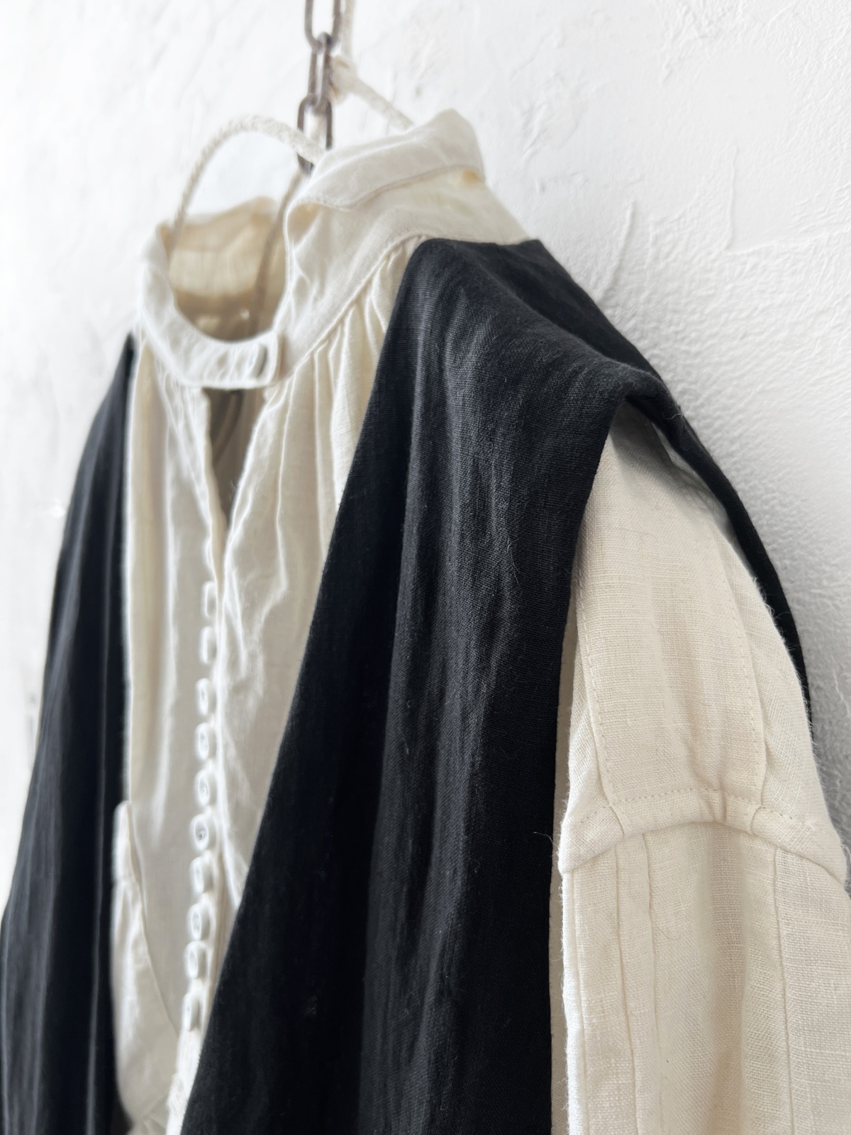MARCHE' DE SOEUR/リネンのベストワンピース・黒×生成り