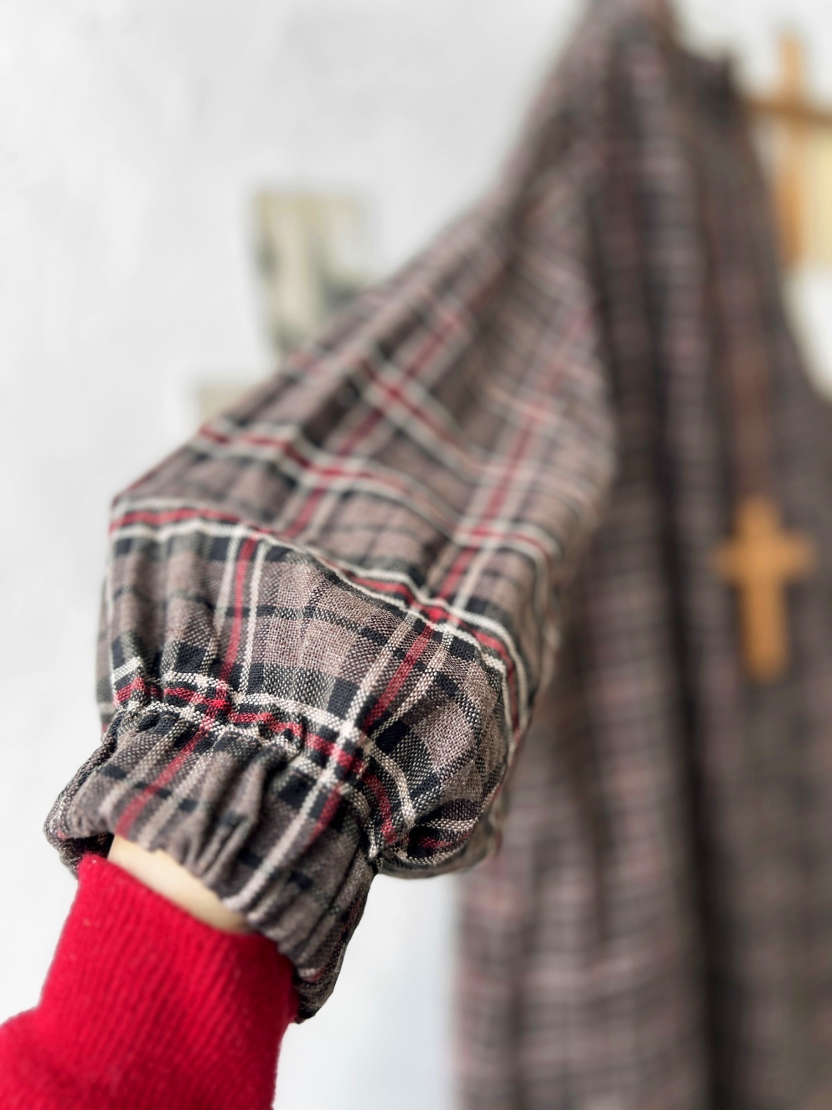 MARCHE' DE SOEUR/シャーリングネックワンピース・レッドブラウンチェック [MDS251106]