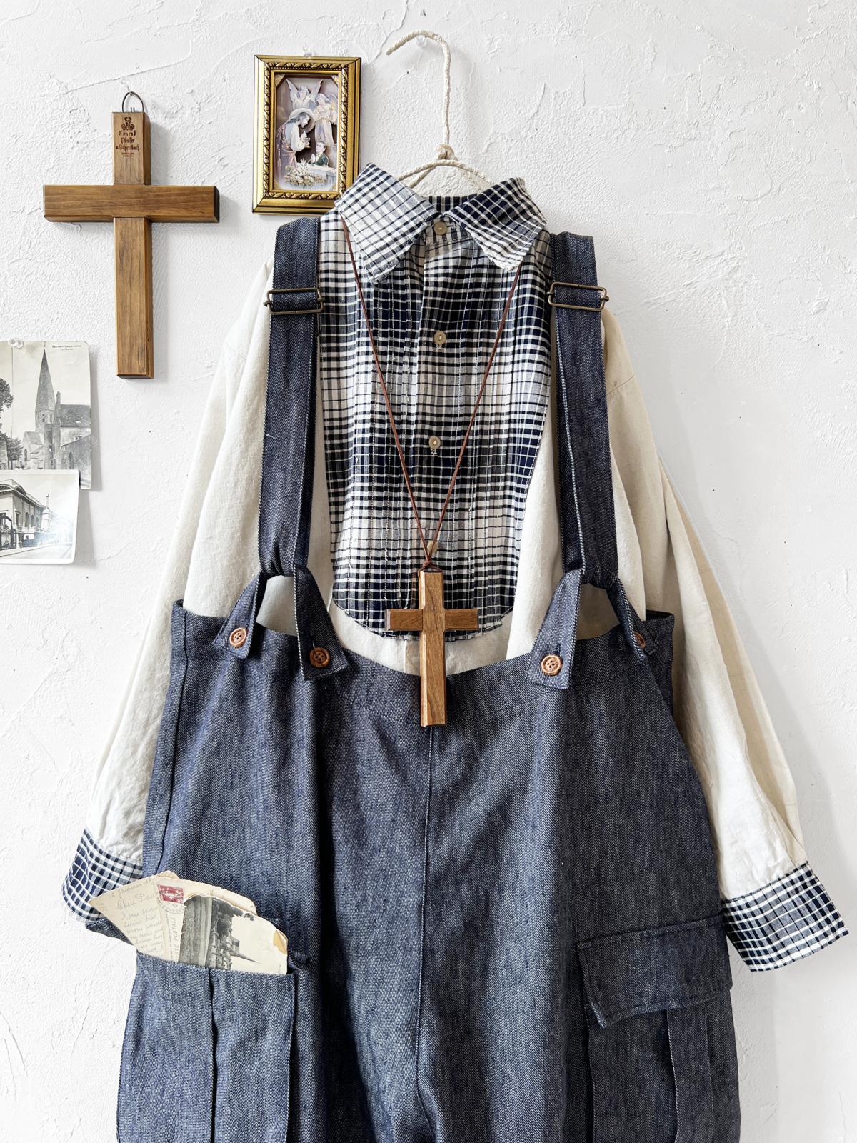 ヴィンテージのサスペンダーパンツを基にデザインした