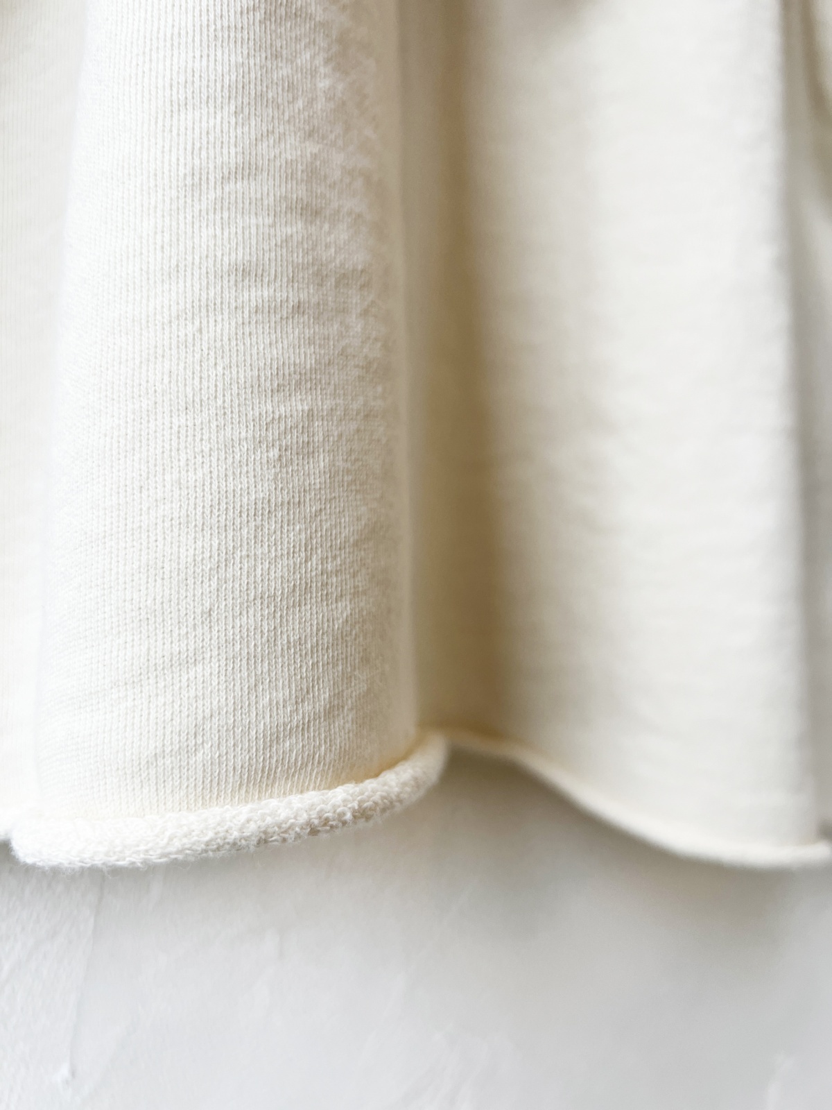 袖と裾が切りっぱなしデザインでカジュアルな雰囲気。