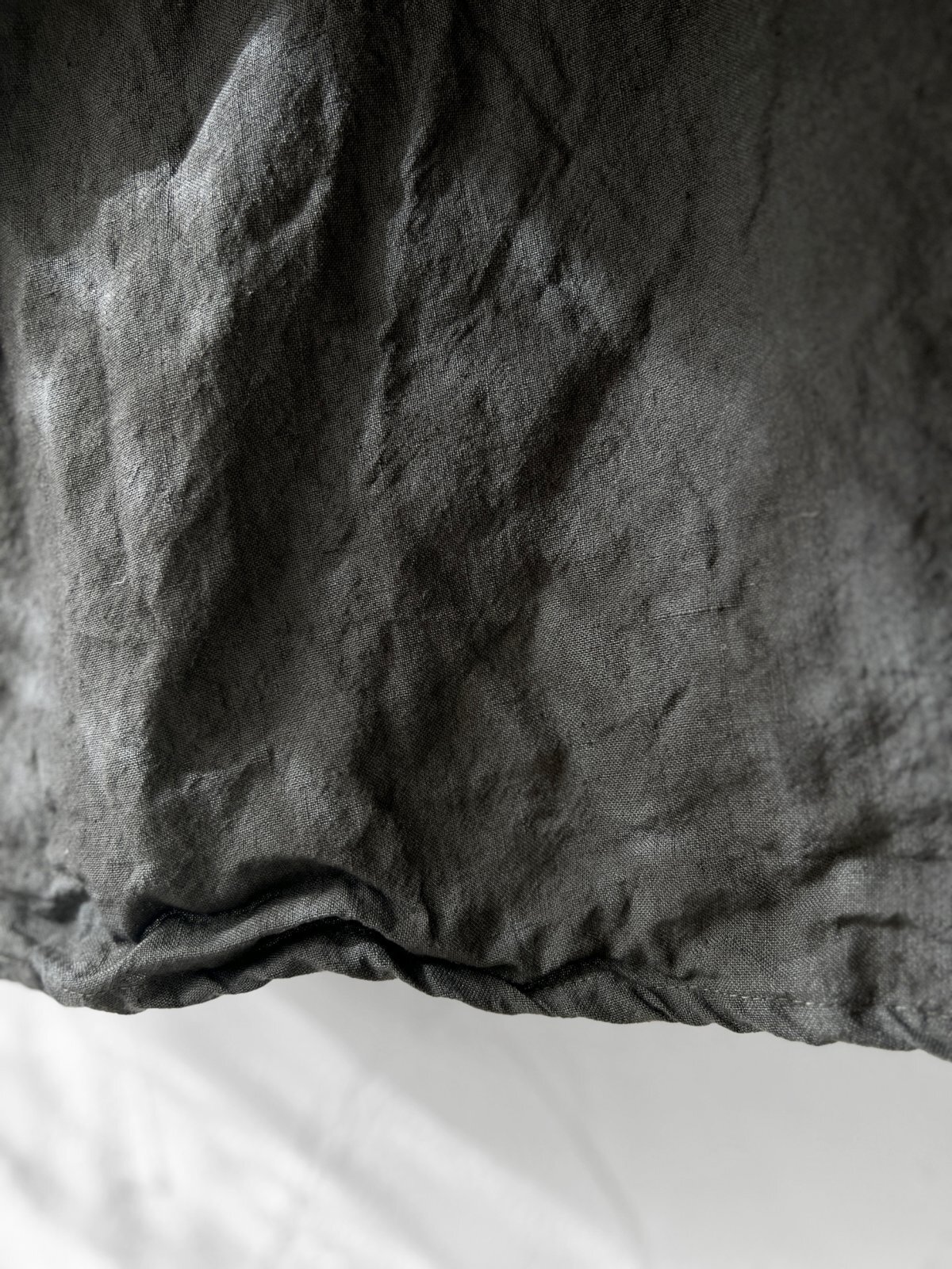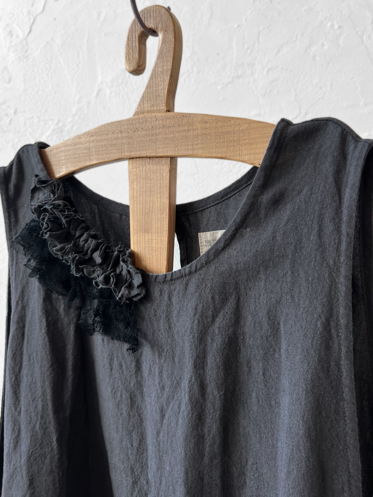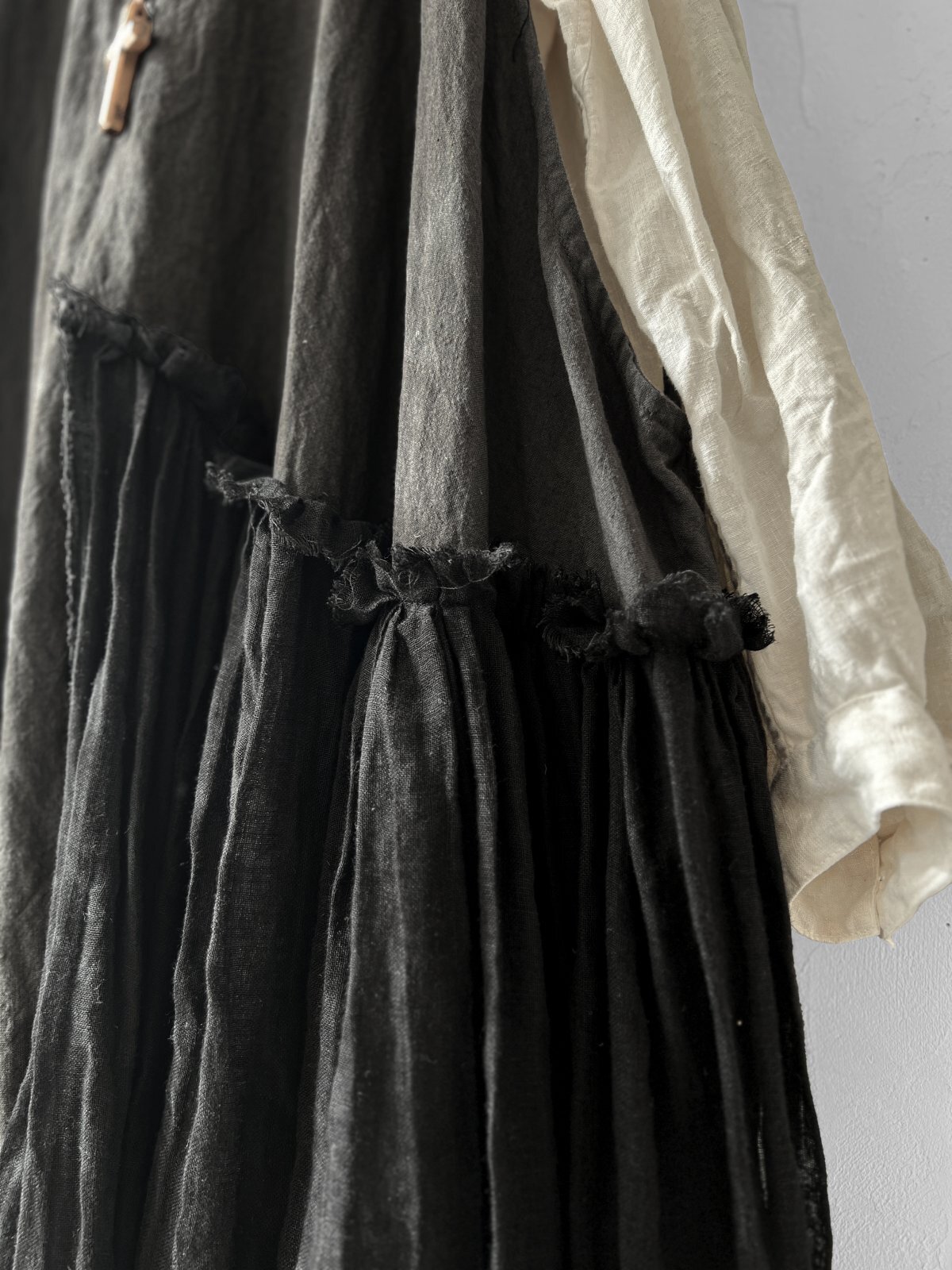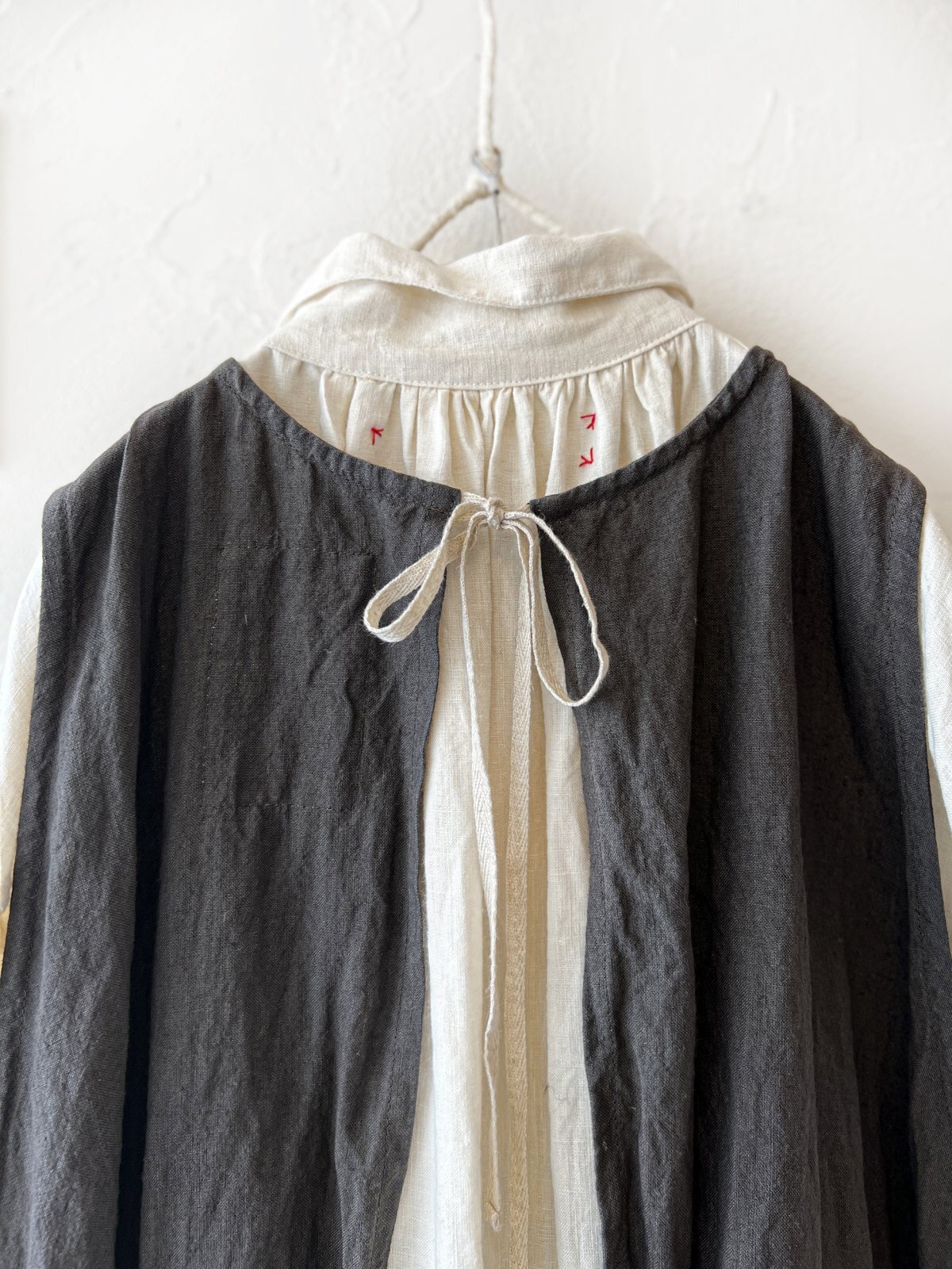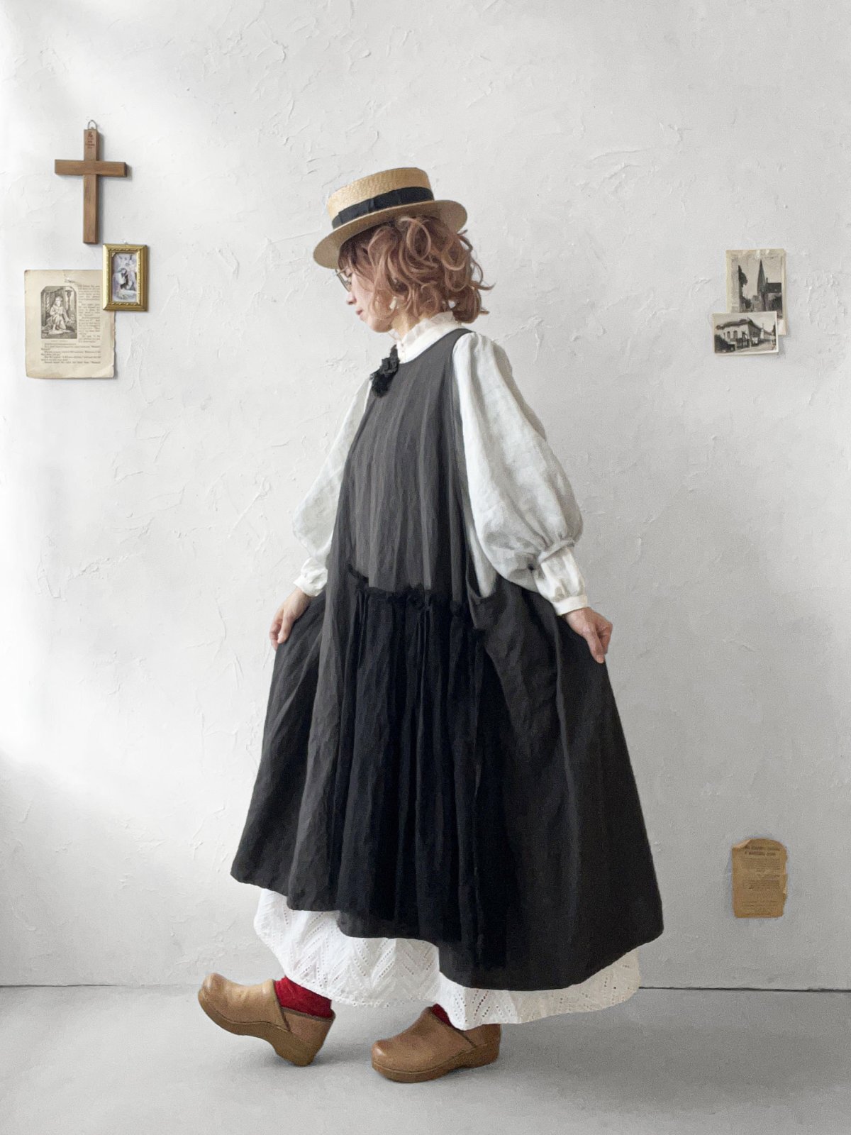 襟元には黒のアンティークレースを、裾にはリネンガーゼを
