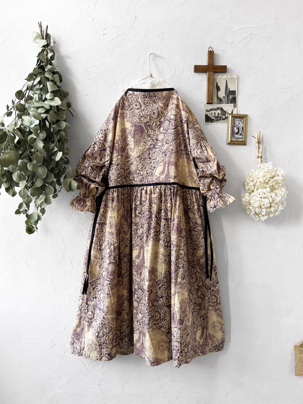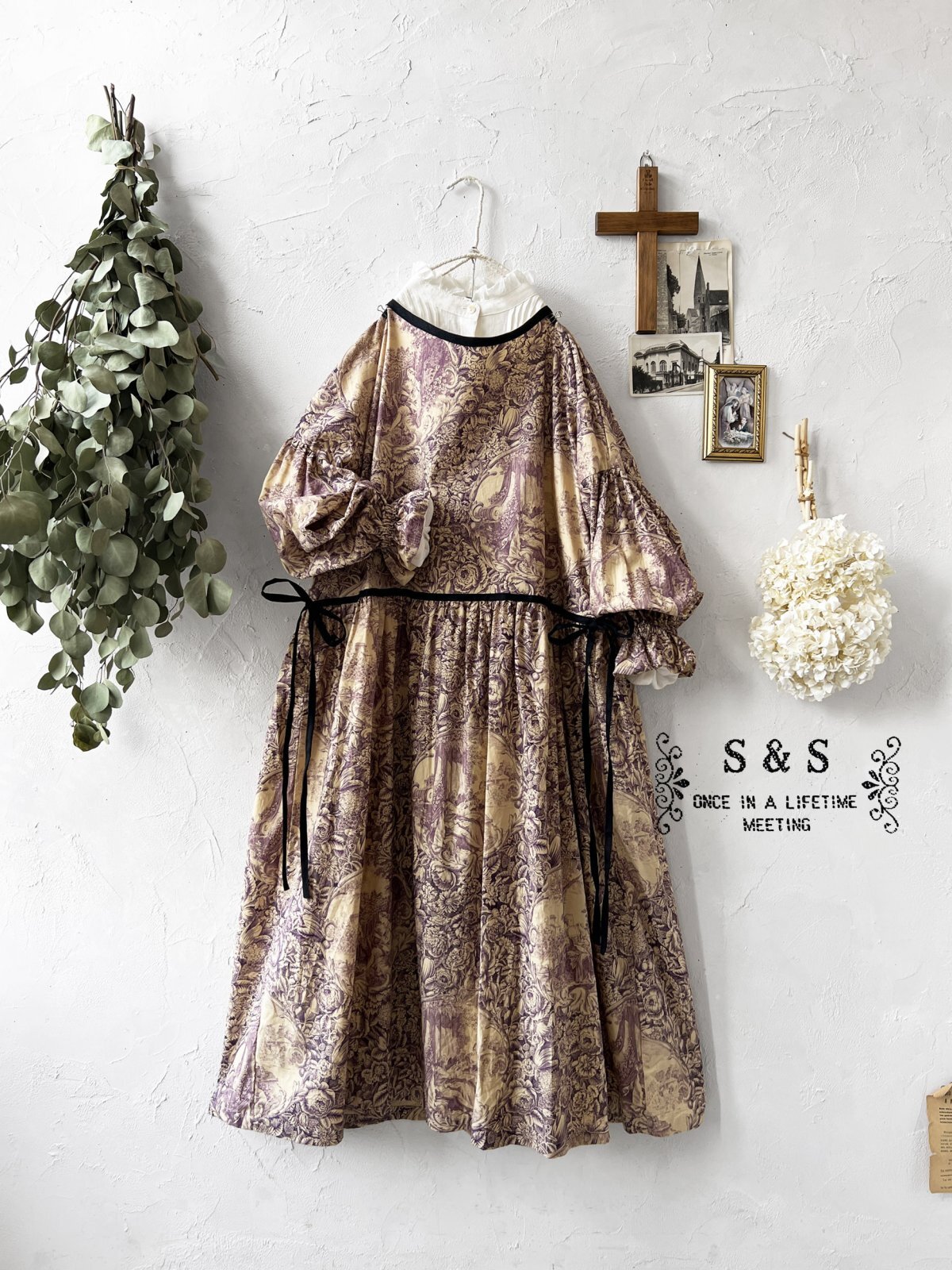 shizuka's/トワルドジュイのリボンワンピース・(ベルスリーブ)山葡萄 [SIZ251201]