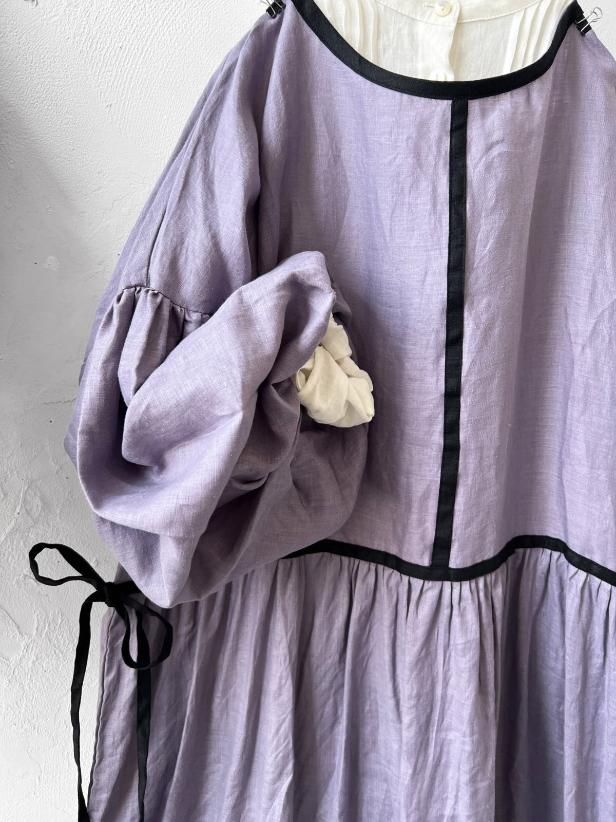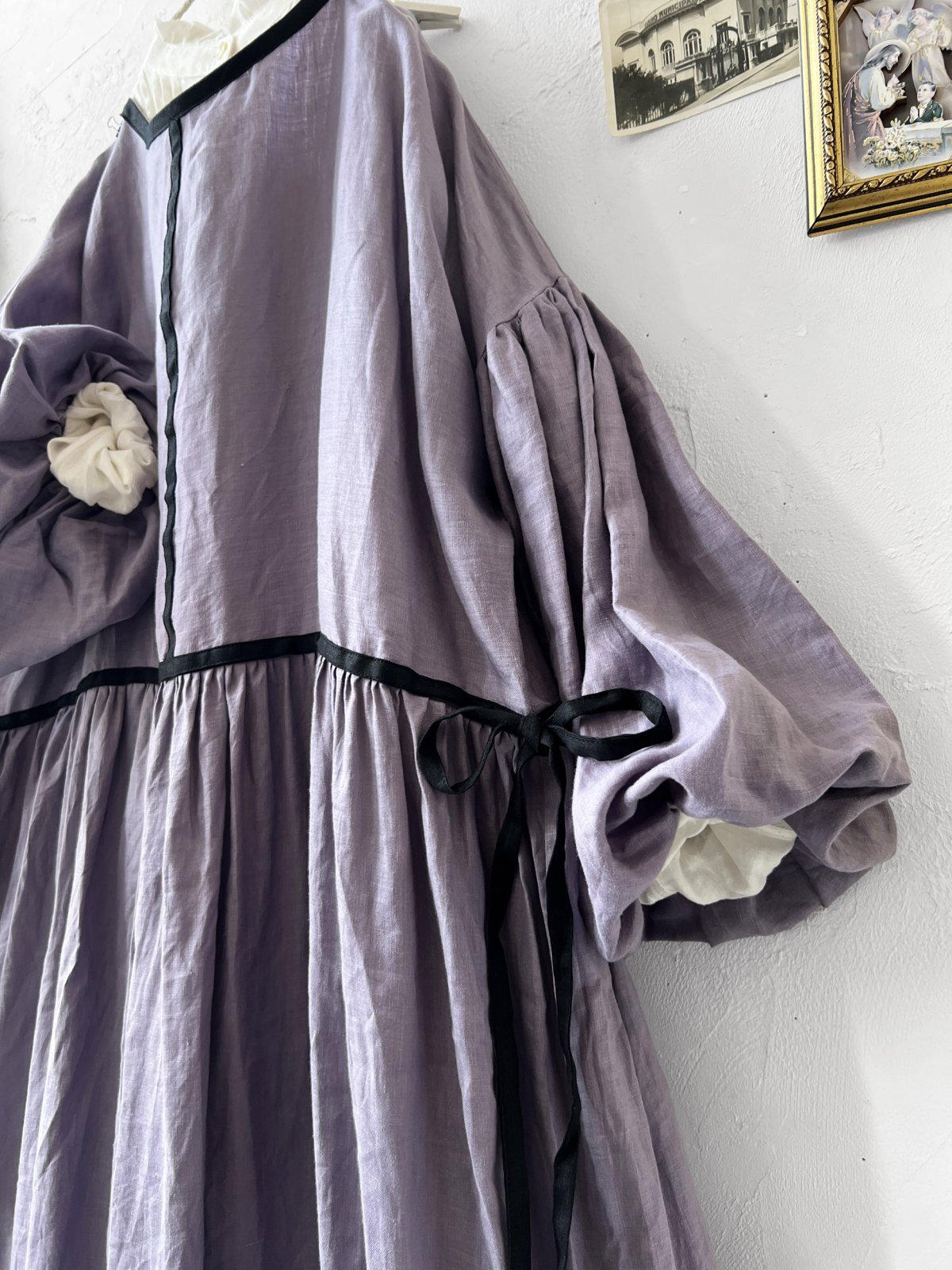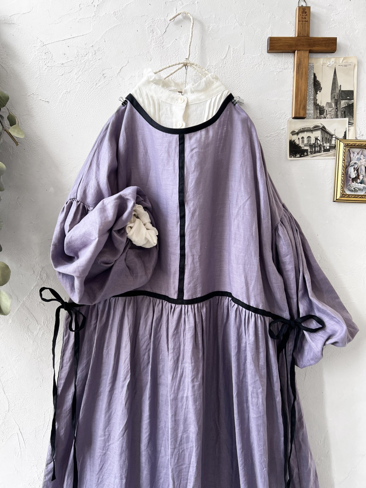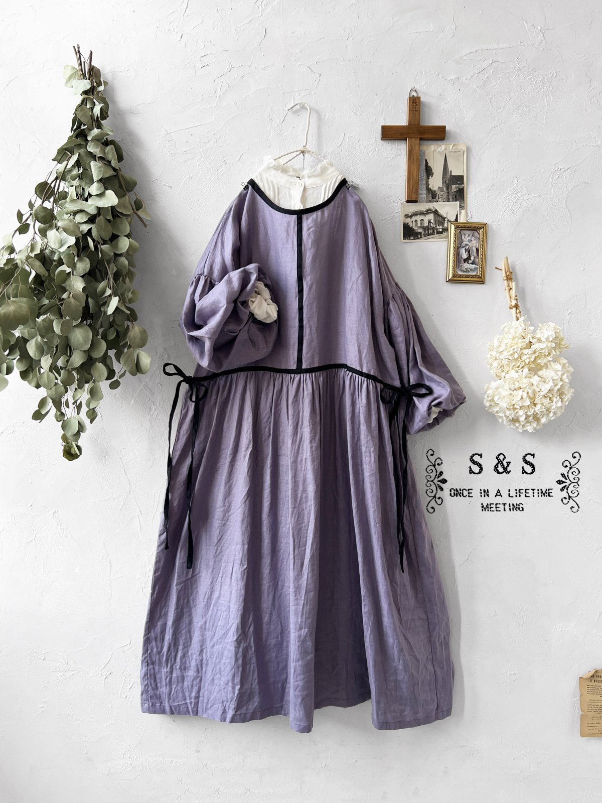 shizuka's/リネンのリボンワンピース(パフスリーブ)スミレ [SIZ251202]