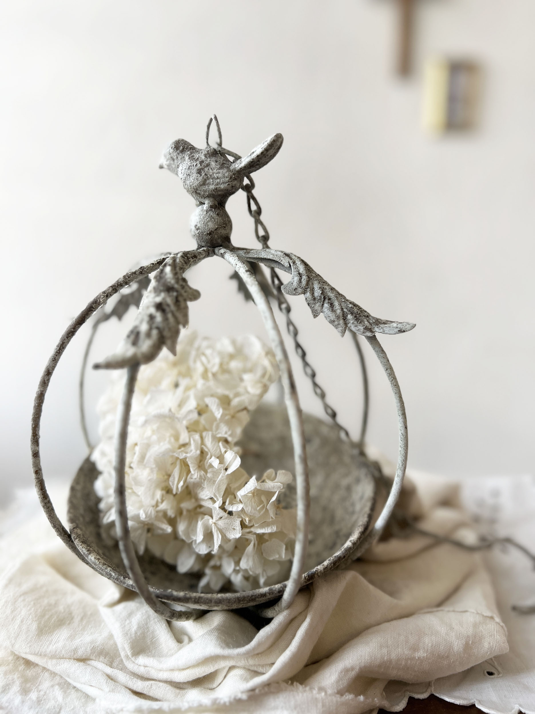アンティーク加工を施したアイアンの鳥かご。