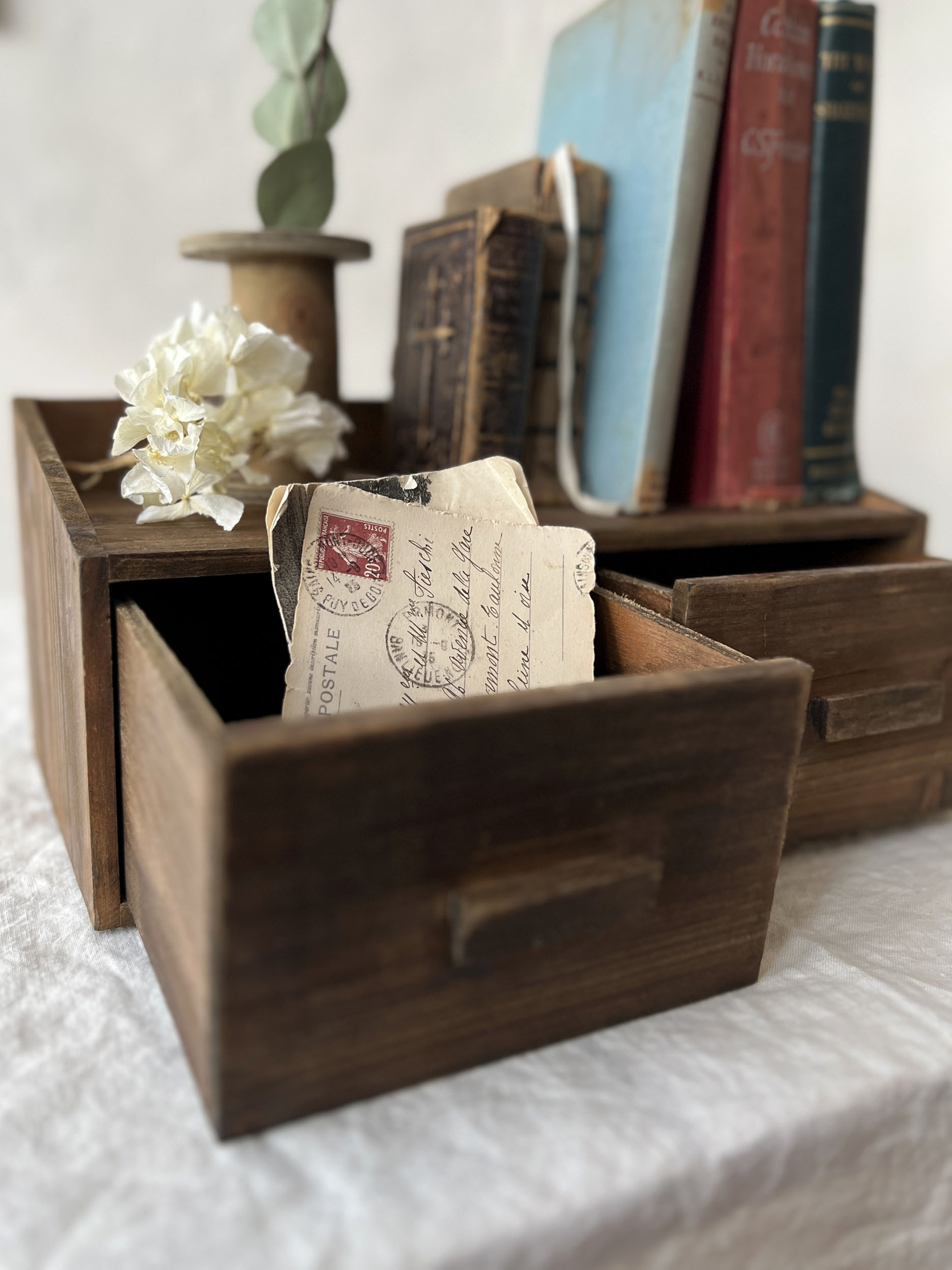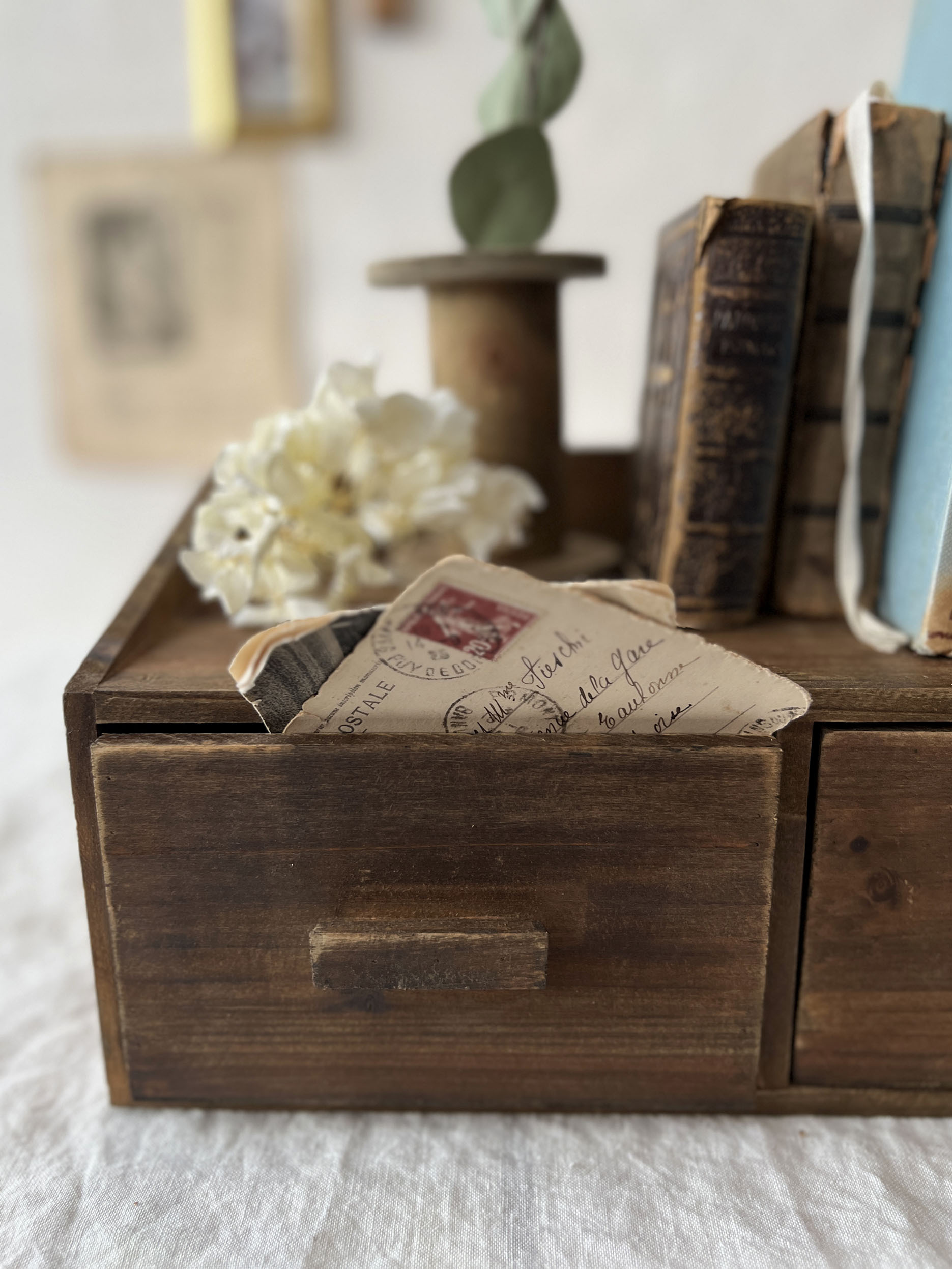 木の温もりを感じられる卓上チェスト。