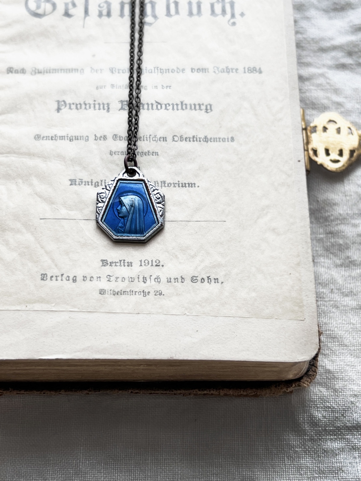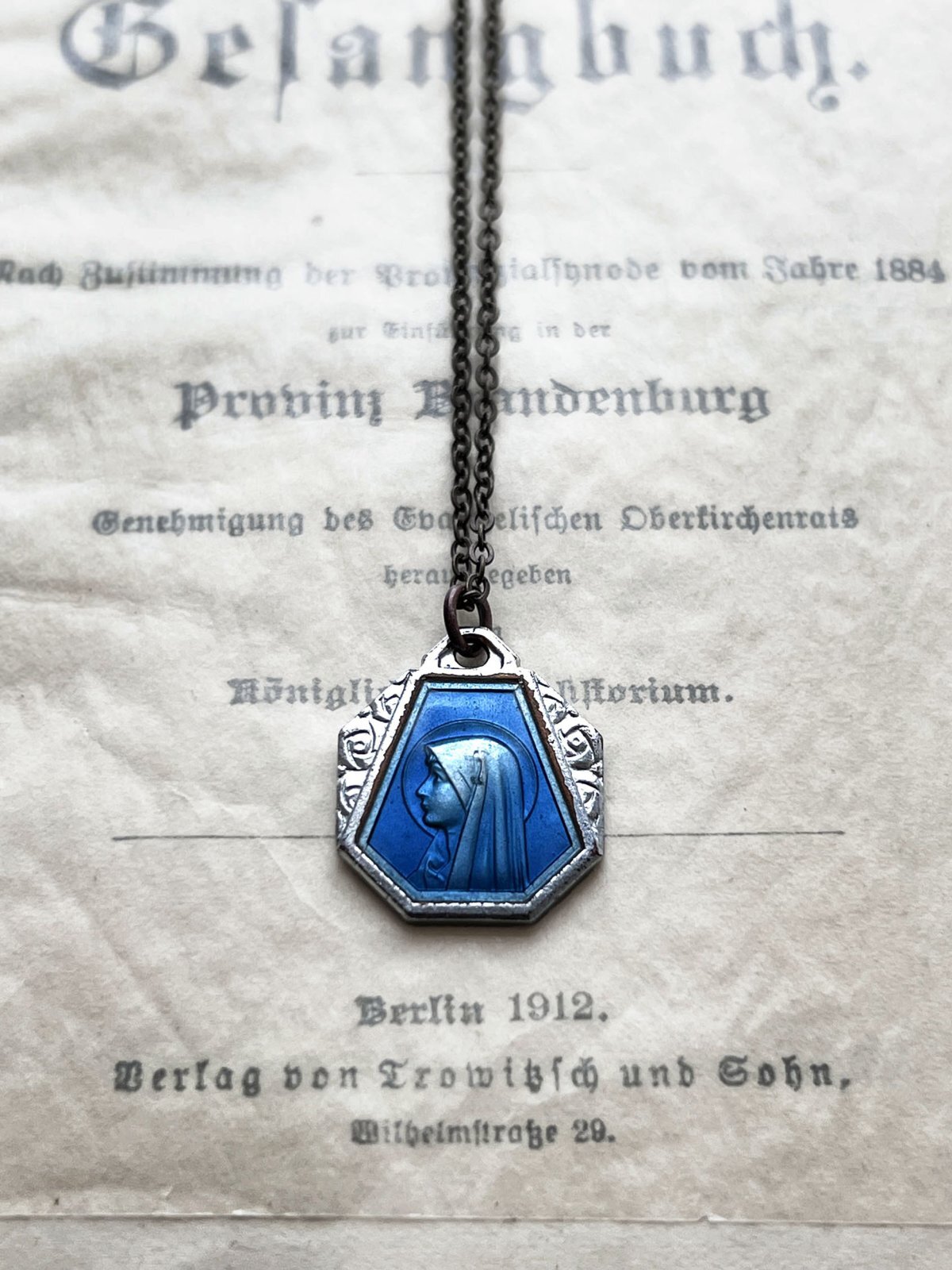 antique/ルルドの泉のメダイネックレス・ブルー