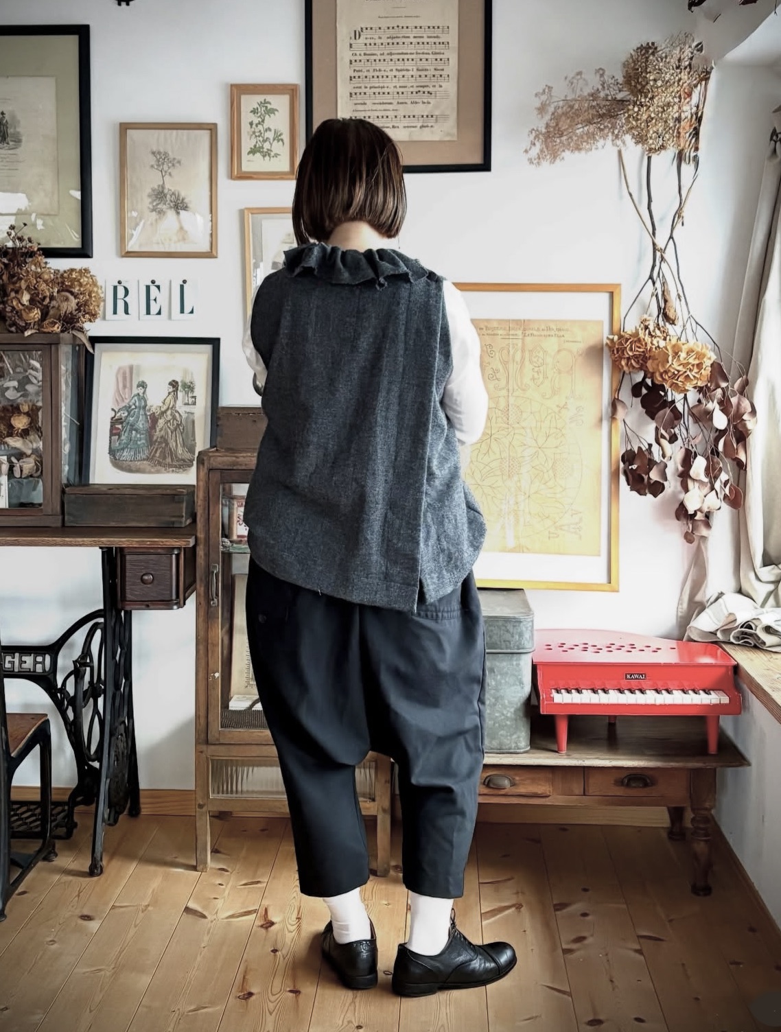Reliure/FRILL VEST・charcoal tweed [MDS260108]