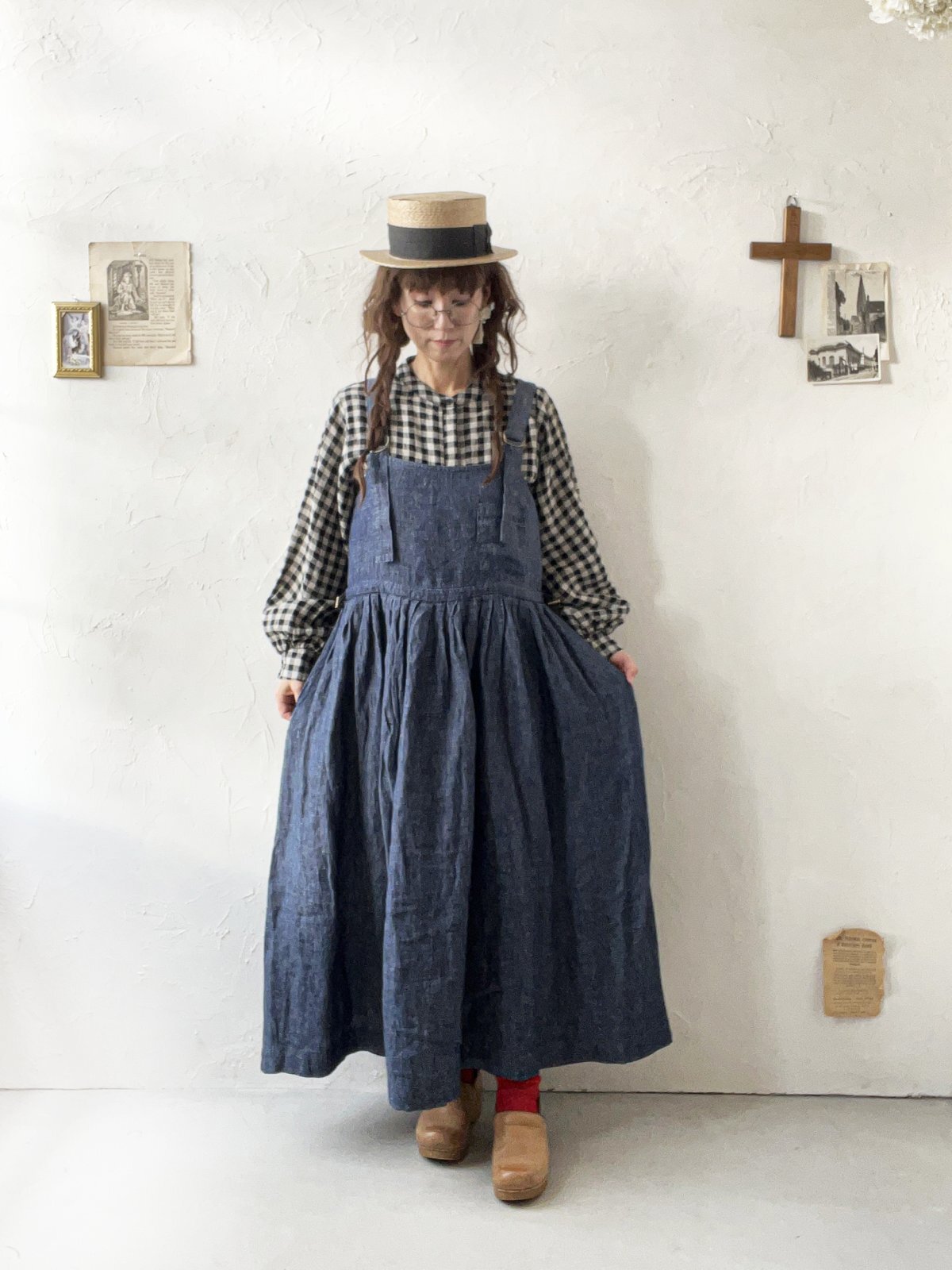 前後どちらでも着られる2way仕様のジャンパースカート。