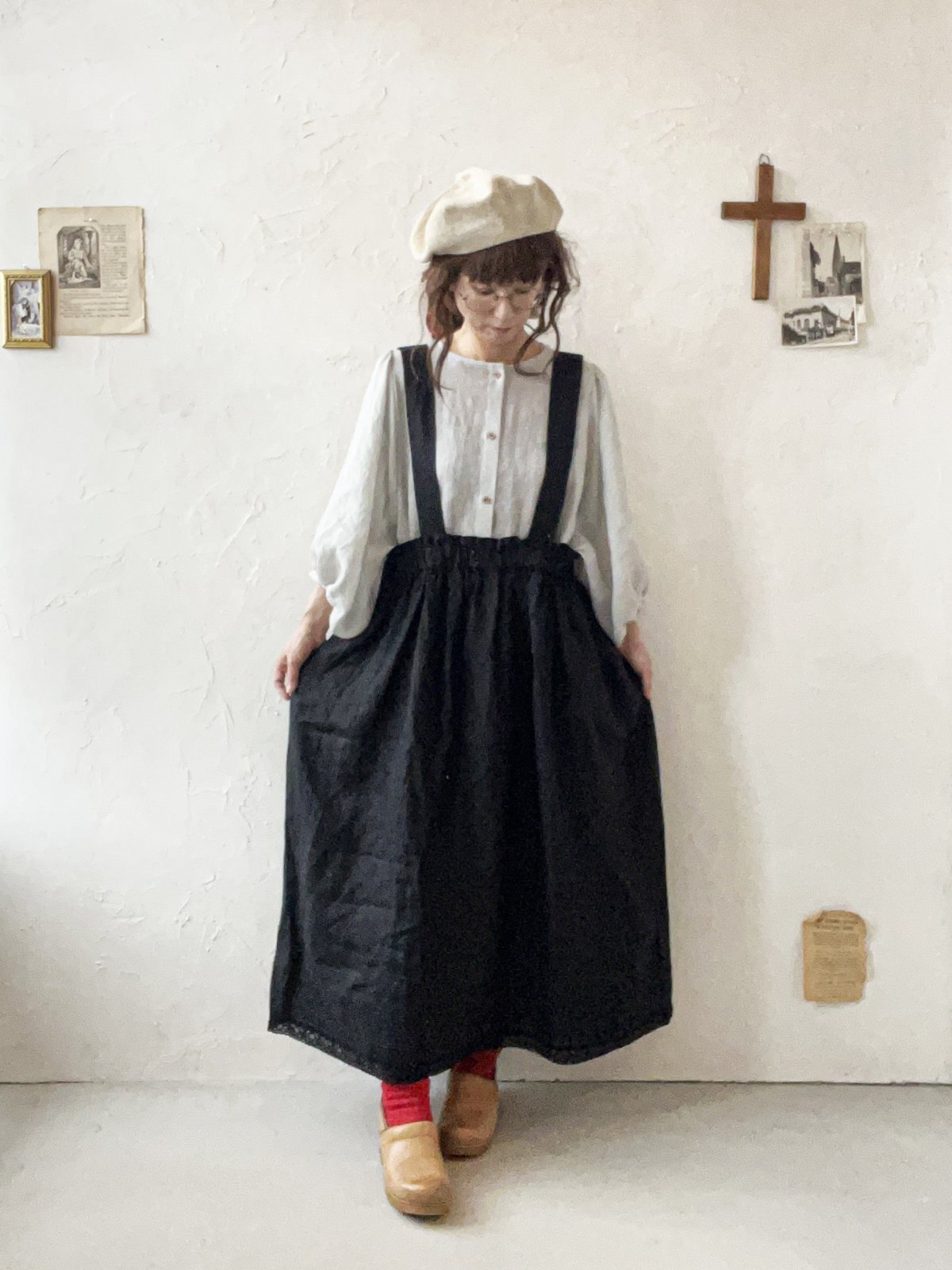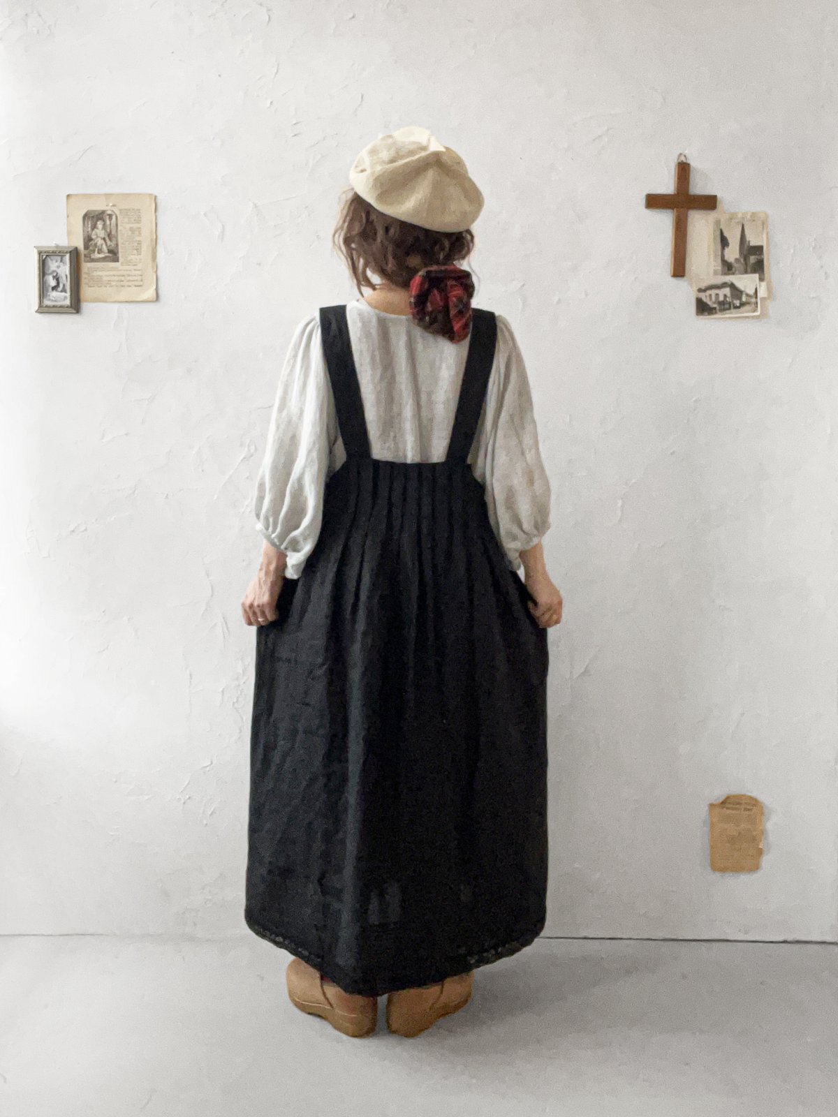 ubasoku/0023 裾レースのタックジャンパースカート・黒 [BNT260206]