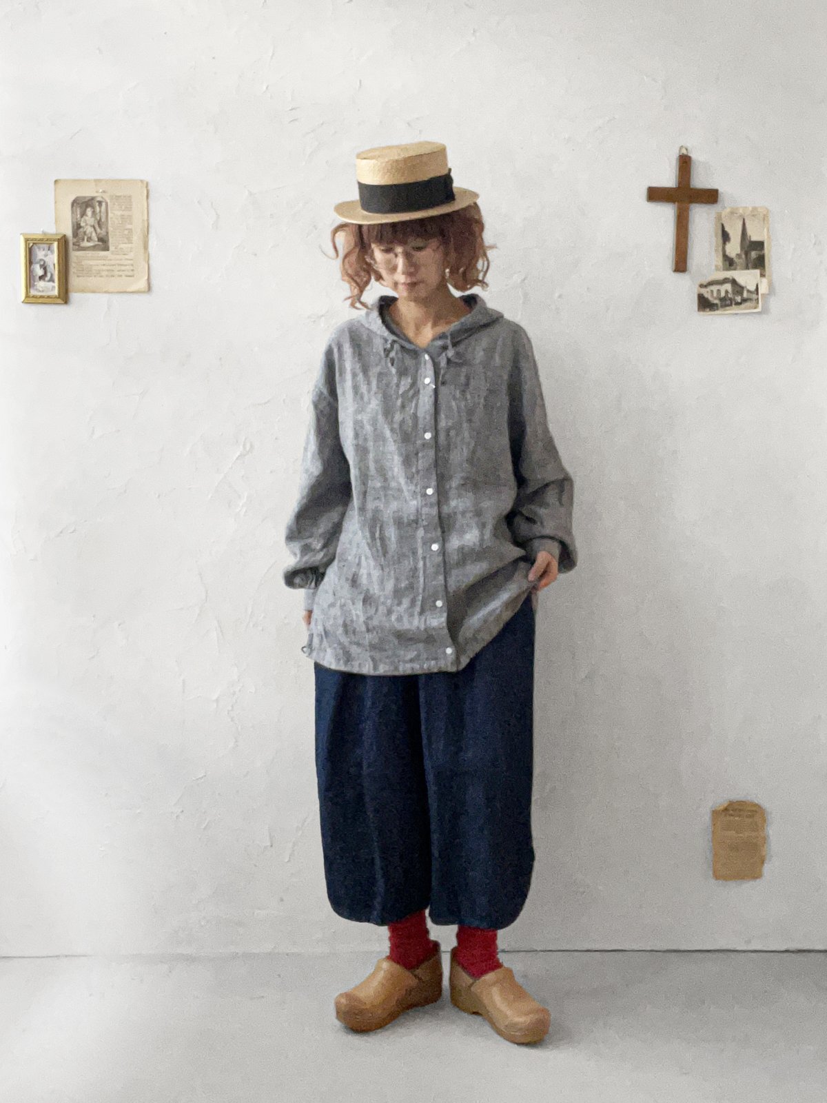 ubasoku/0016 フード付きバルーンブラウス・ネイビーシャンブレー [BNT260201]