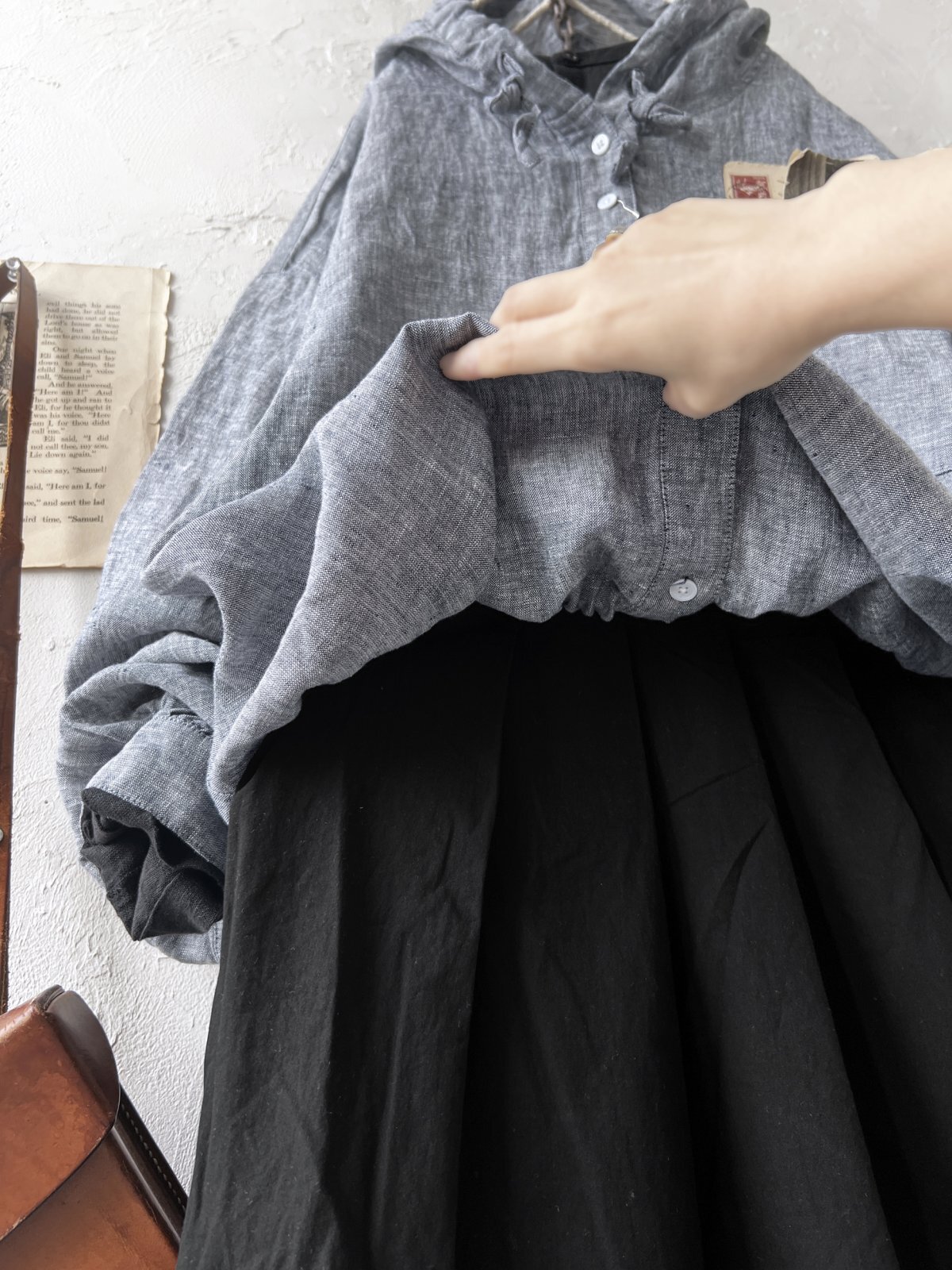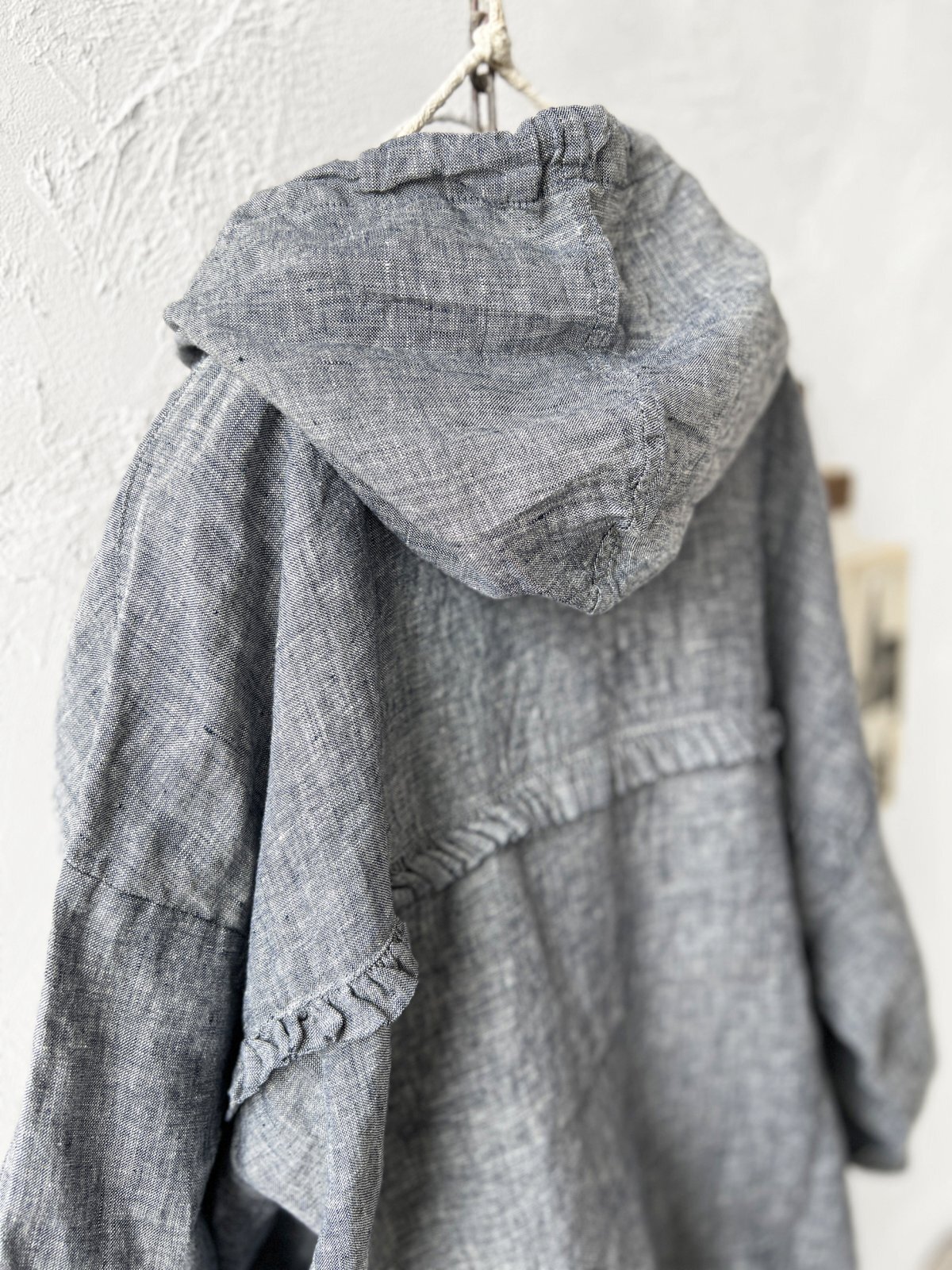 くっしゅり、軽い着心地のリネン先染めシャンブレー。