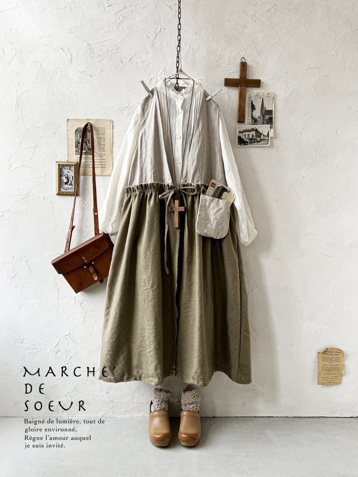 MARCHE' DE SOEUR/ベストワンピース・生成り×オリーブベージュ [MDS260203]