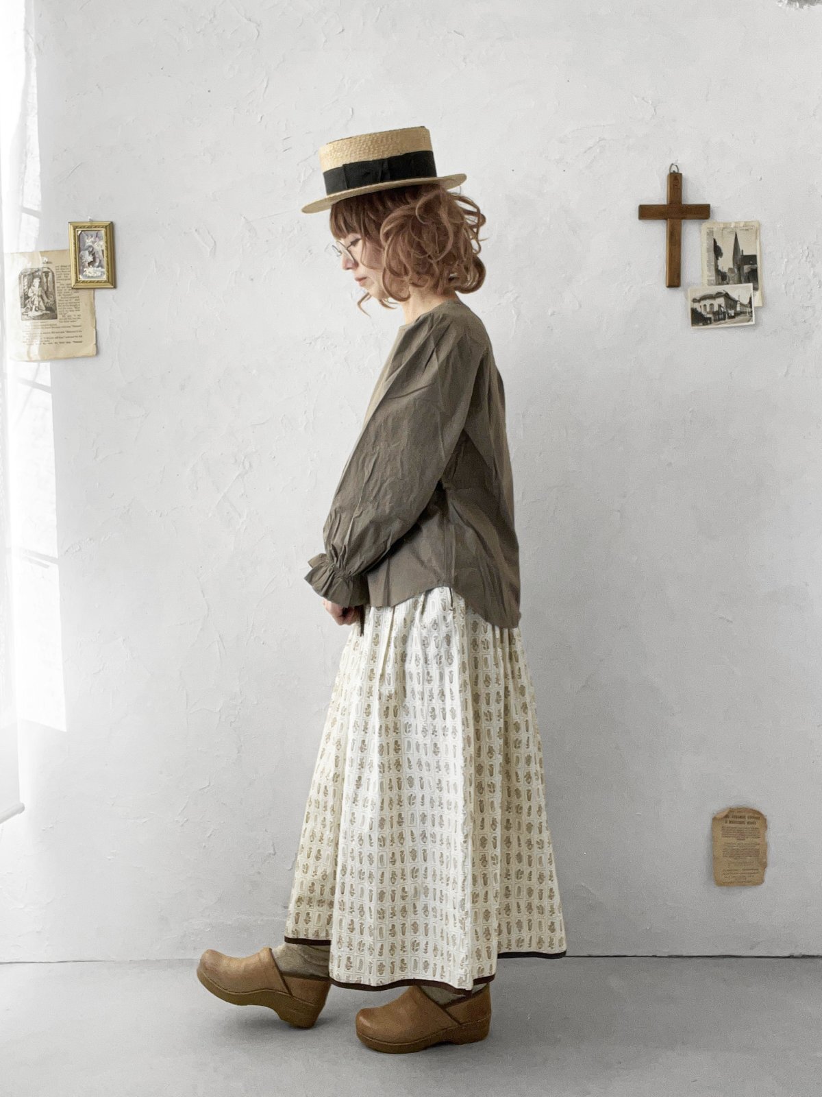 nous rendent heureux/シャーリングパフ袖ブラウス・グレージュ