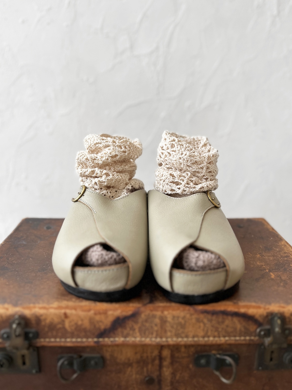 オープントゥなのでカラーや柄物ソックスを覗かせても