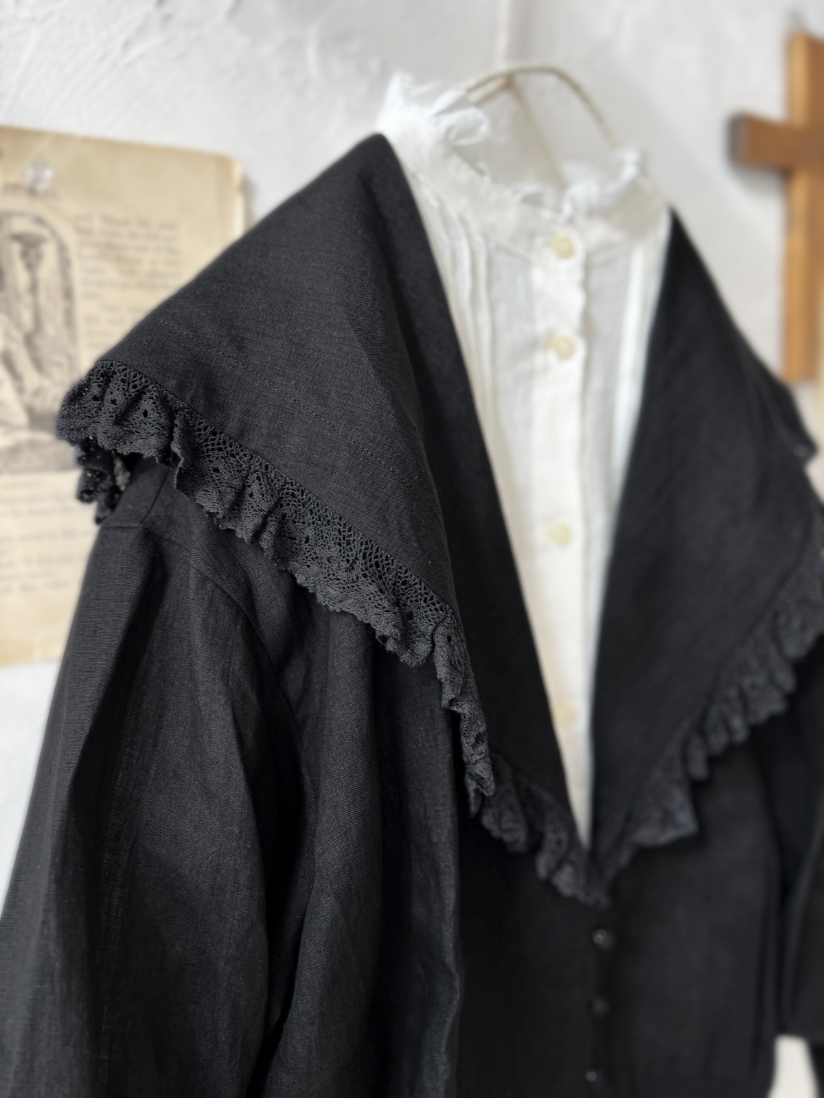 MAGALI /コルトレイクリネン レース襟カーディガン・ブラック [MGL260203]
