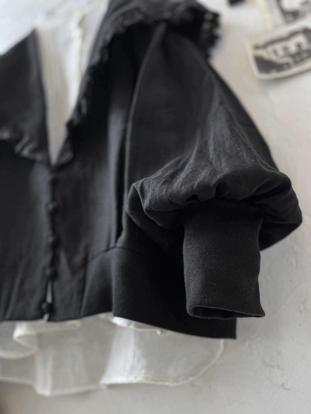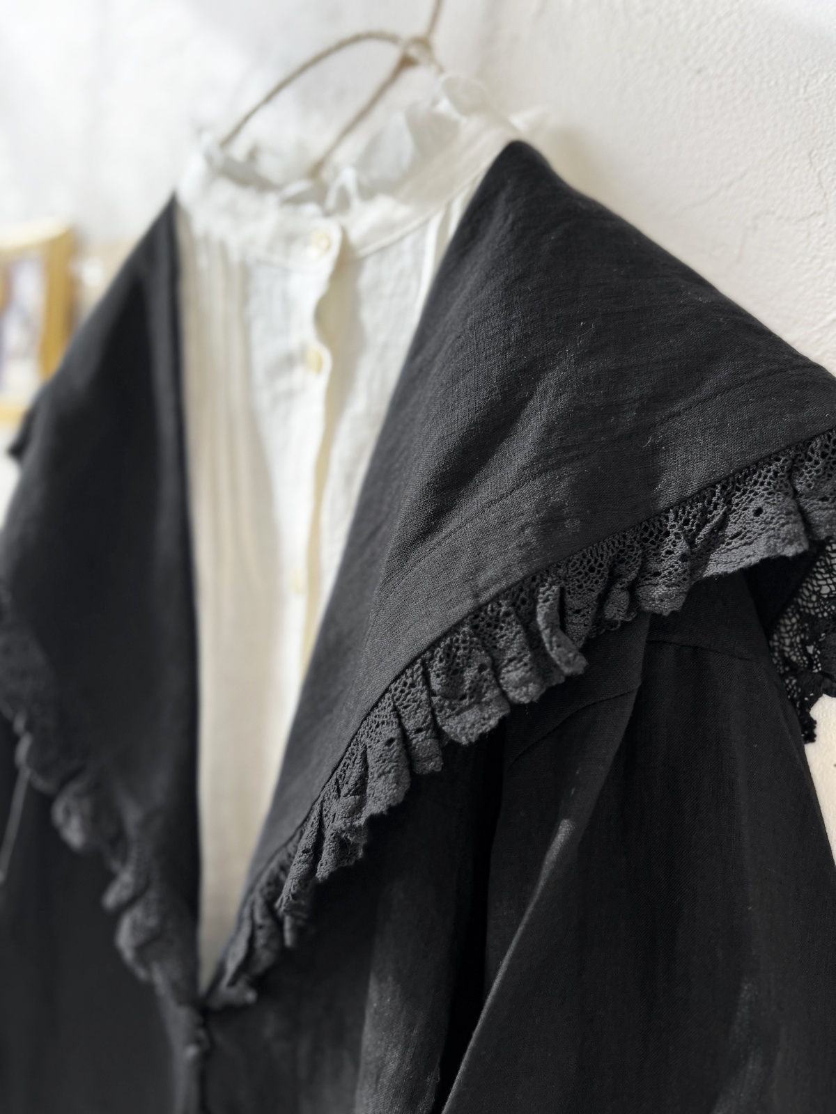 MAGALI /コルトレイクリネン レース襟カーディガン・ブラック
