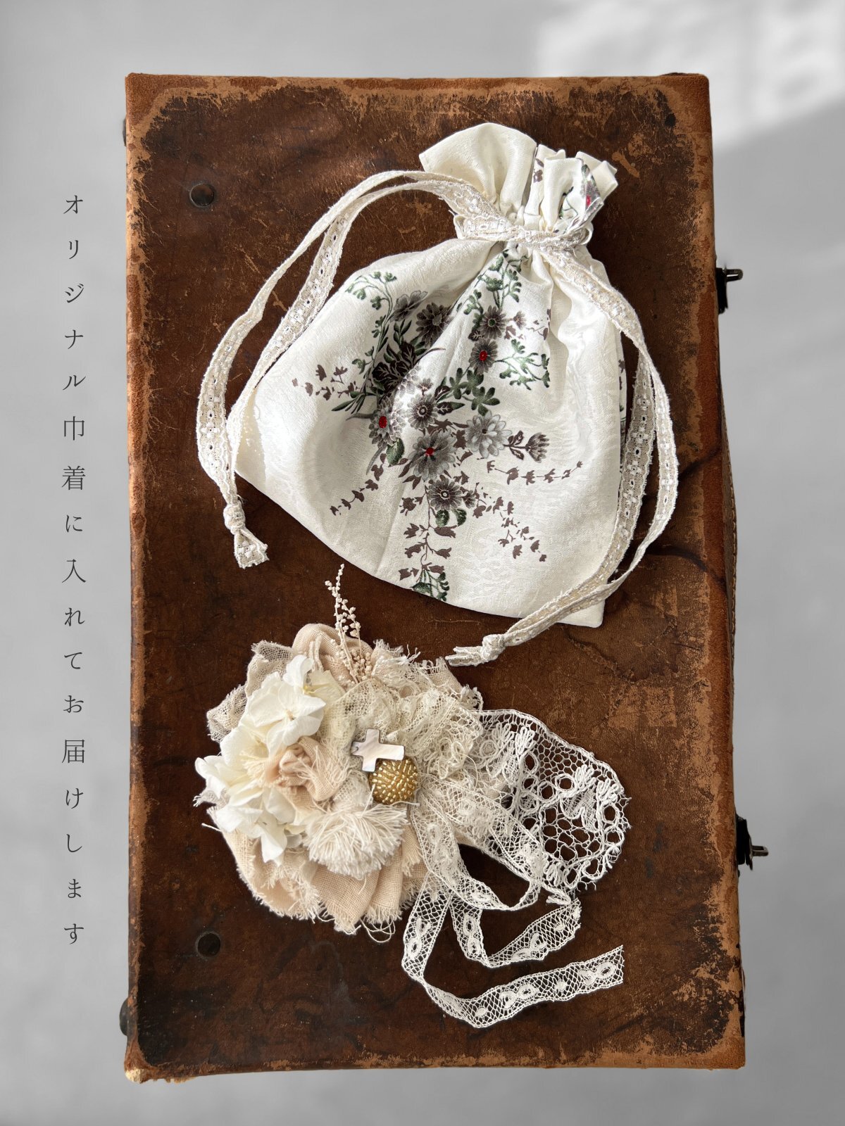 pollenbienco/アンティークレースとプリザーブドフラワーのコサージュ・D [POL260201]