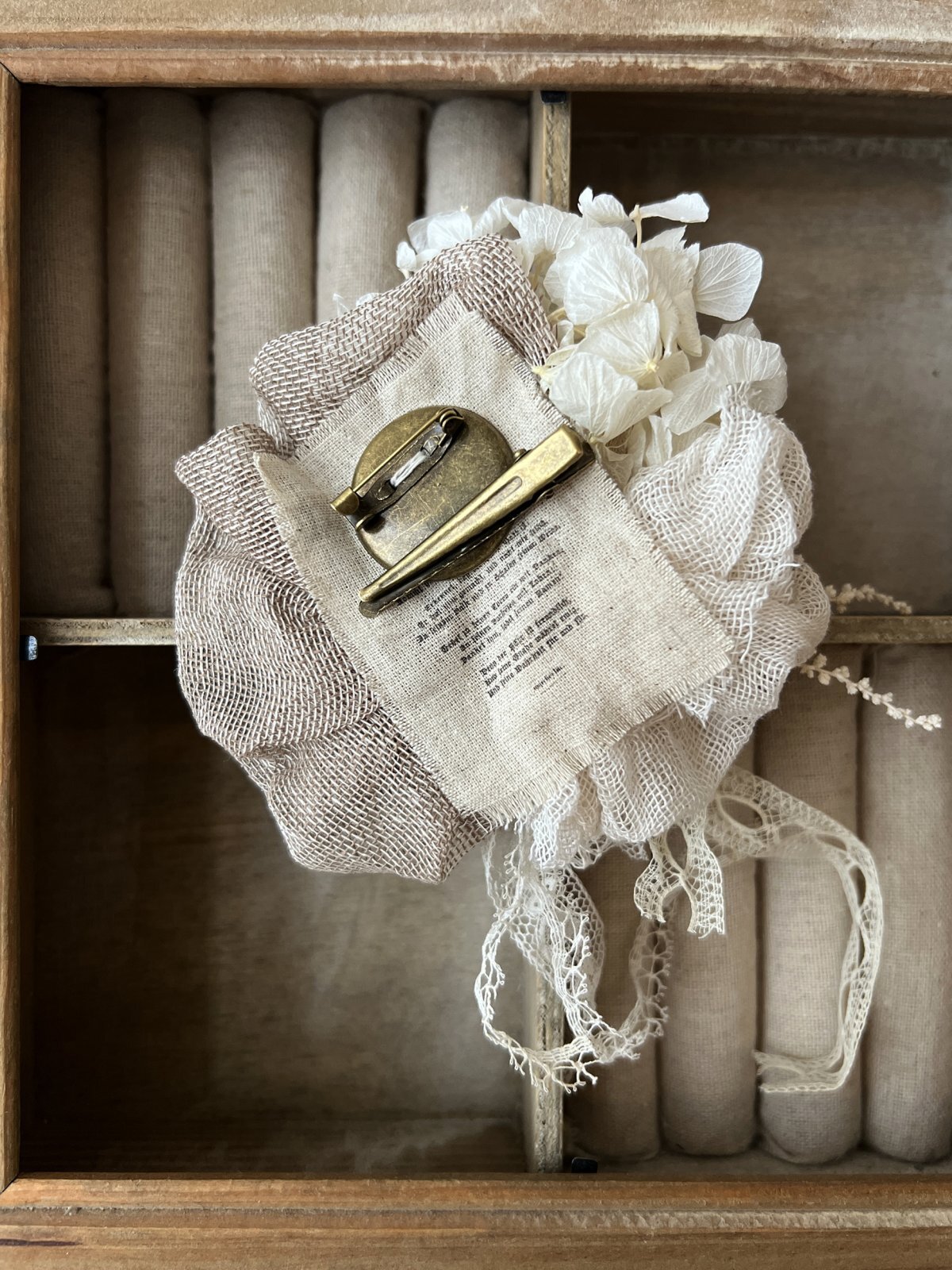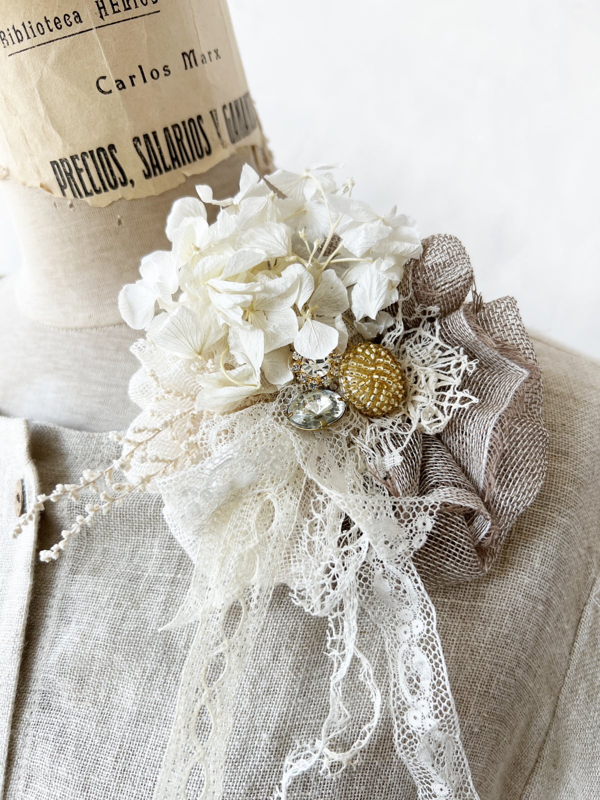 pollenbienco/アンティークレースとプリザーブドフラワーのコサージュ・D