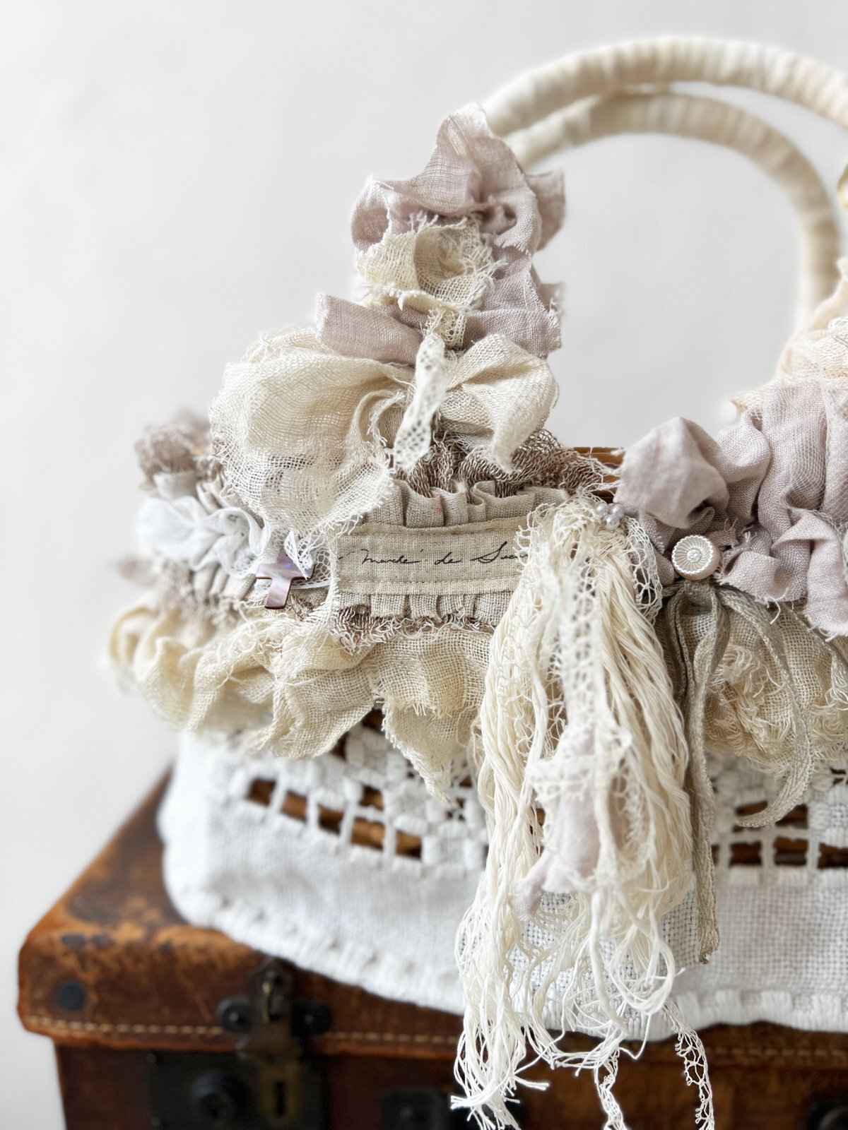 pollenbienco/アンティークレースのバスケット・A [POL260203]