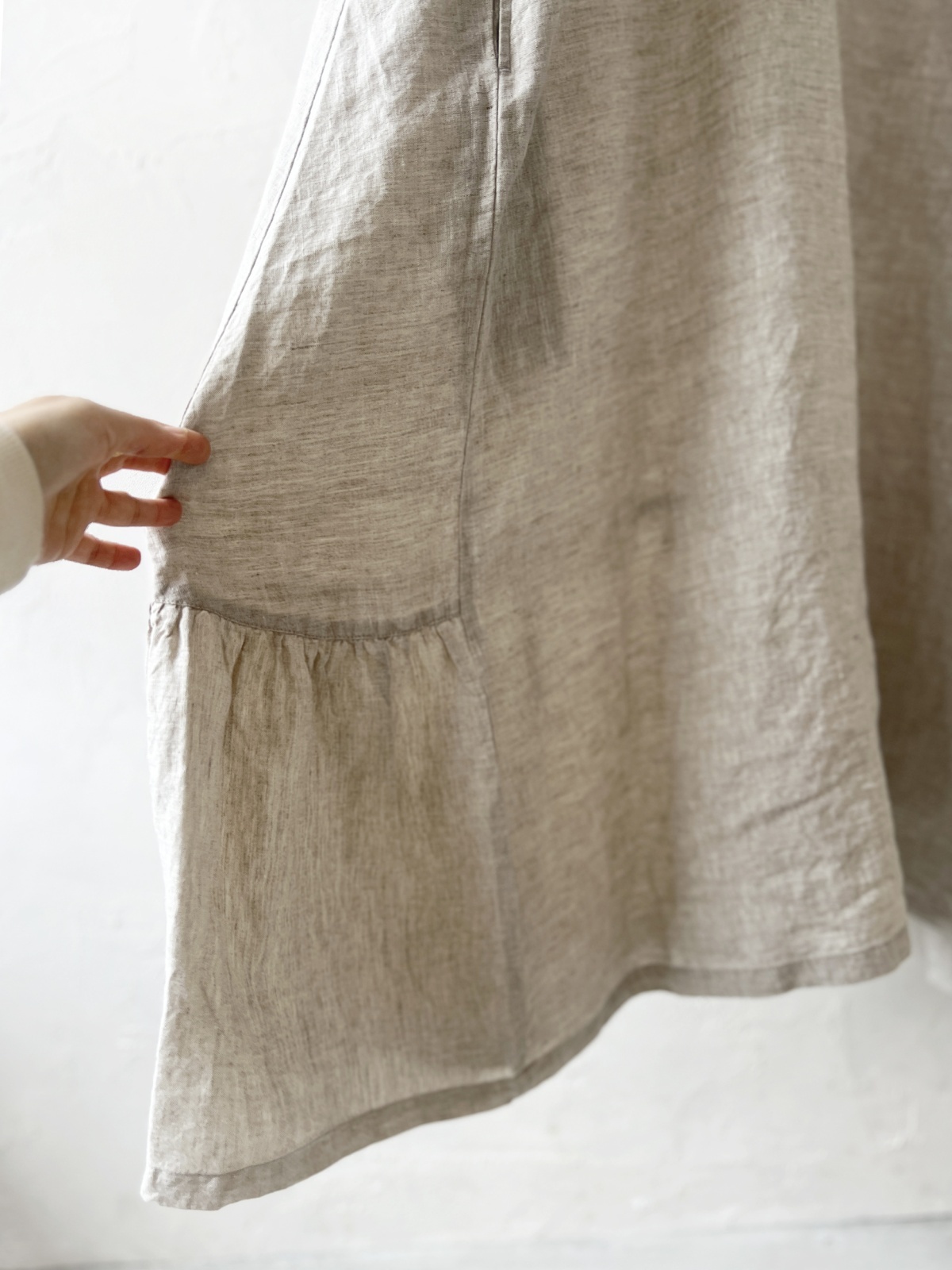 08mab/裾ギャザー切り替えワンピース・生成り