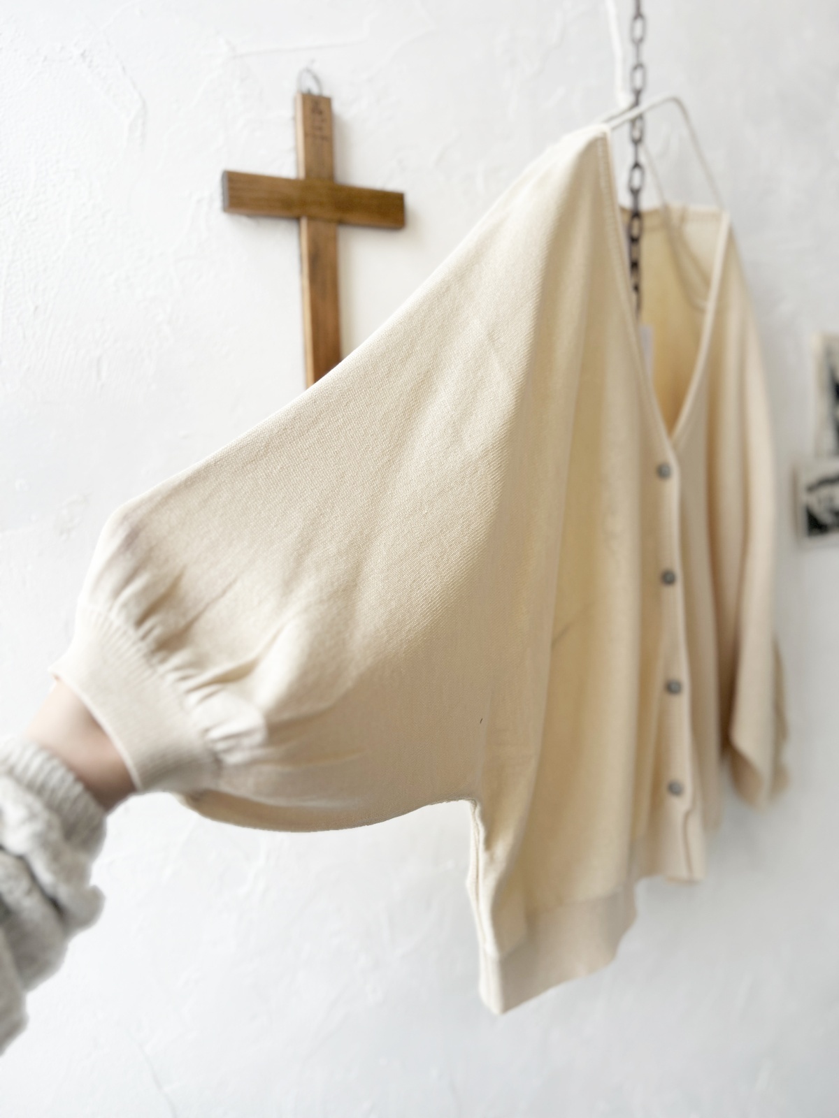 ふわっと軽く羽織れる、ドルマン袖の薄手ニットカーディガン。