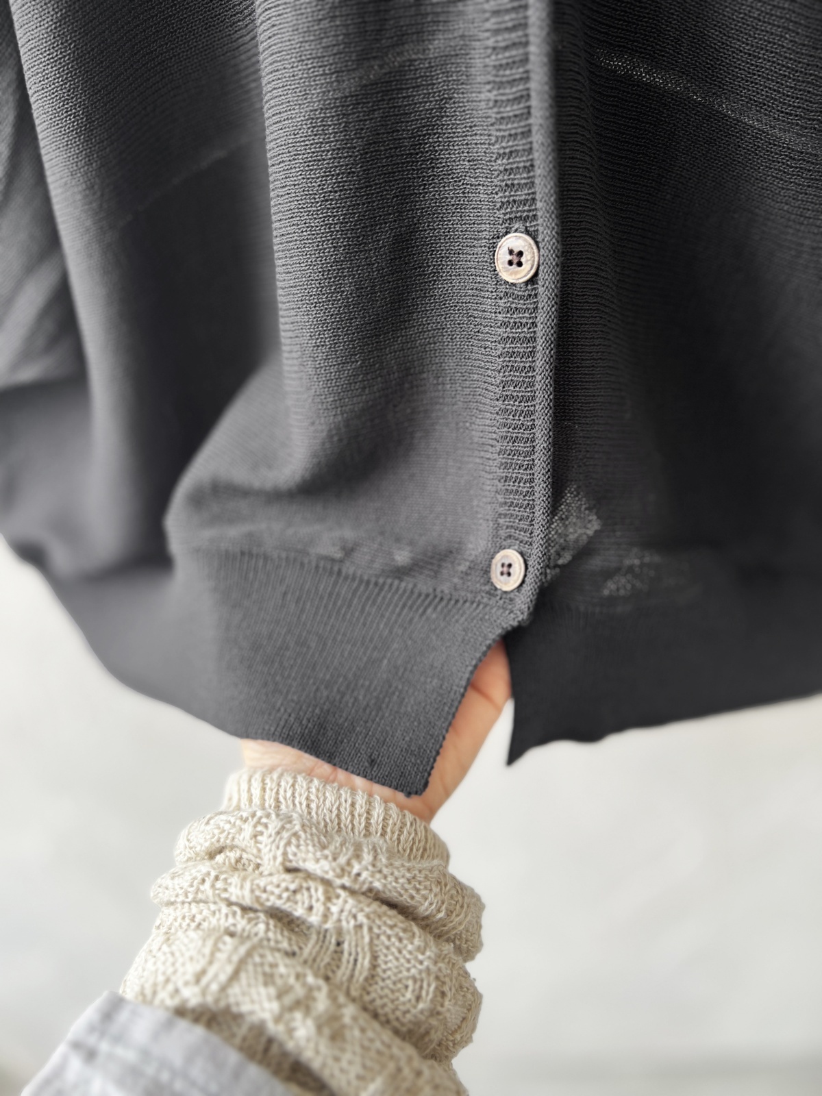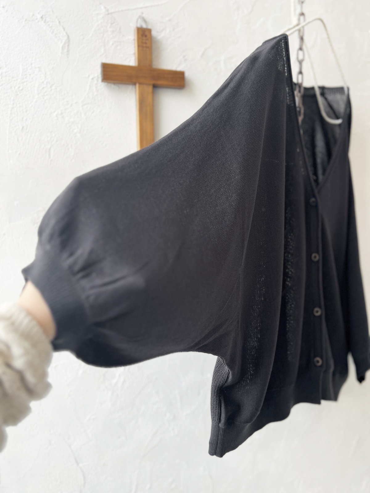 ふわっと軽く羽織れる、ドルマン袖の薄手ニットカーディガン。