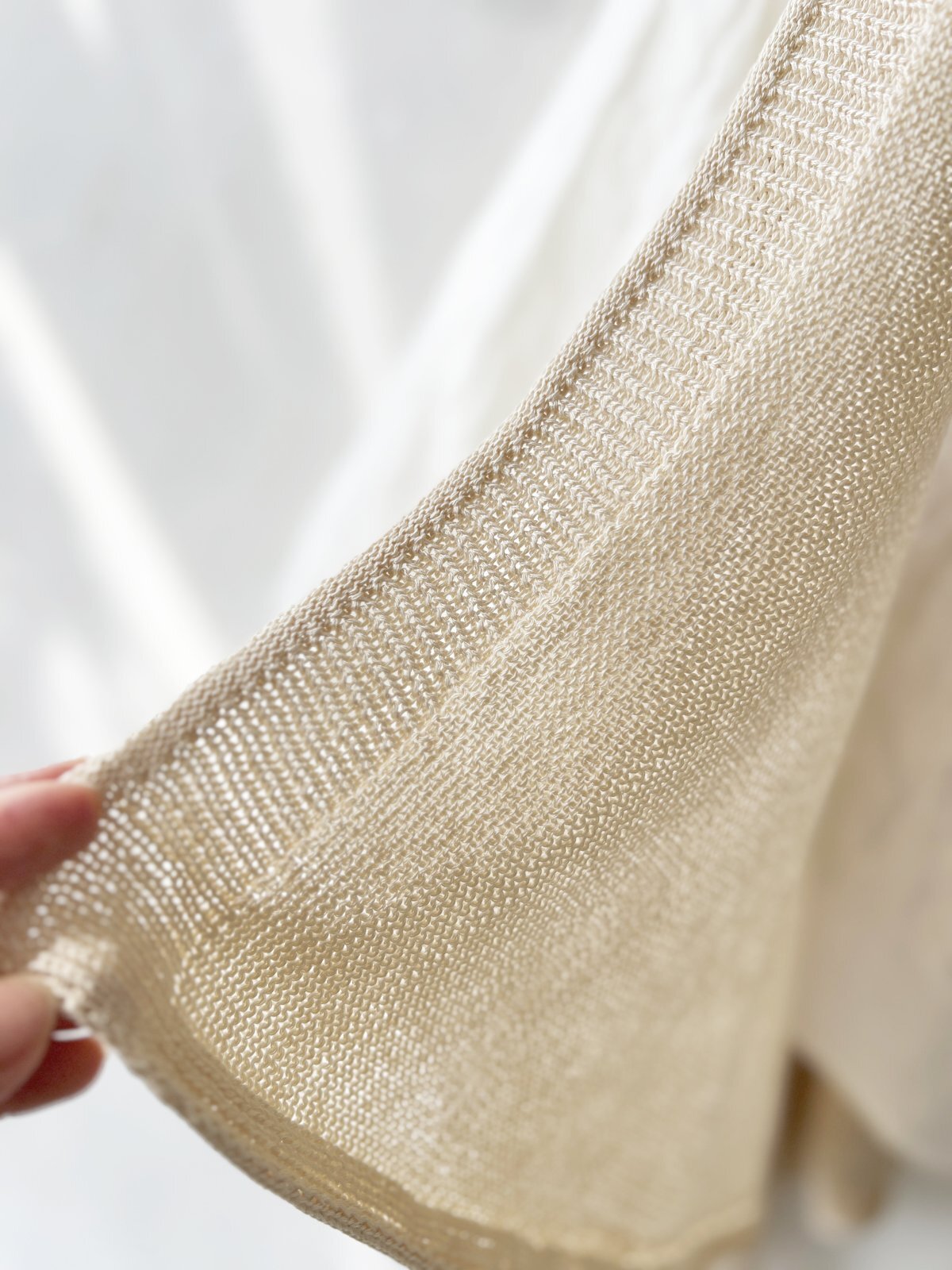 ふわっと軽く羽織れる、薄手ニットのショールカラージレ。