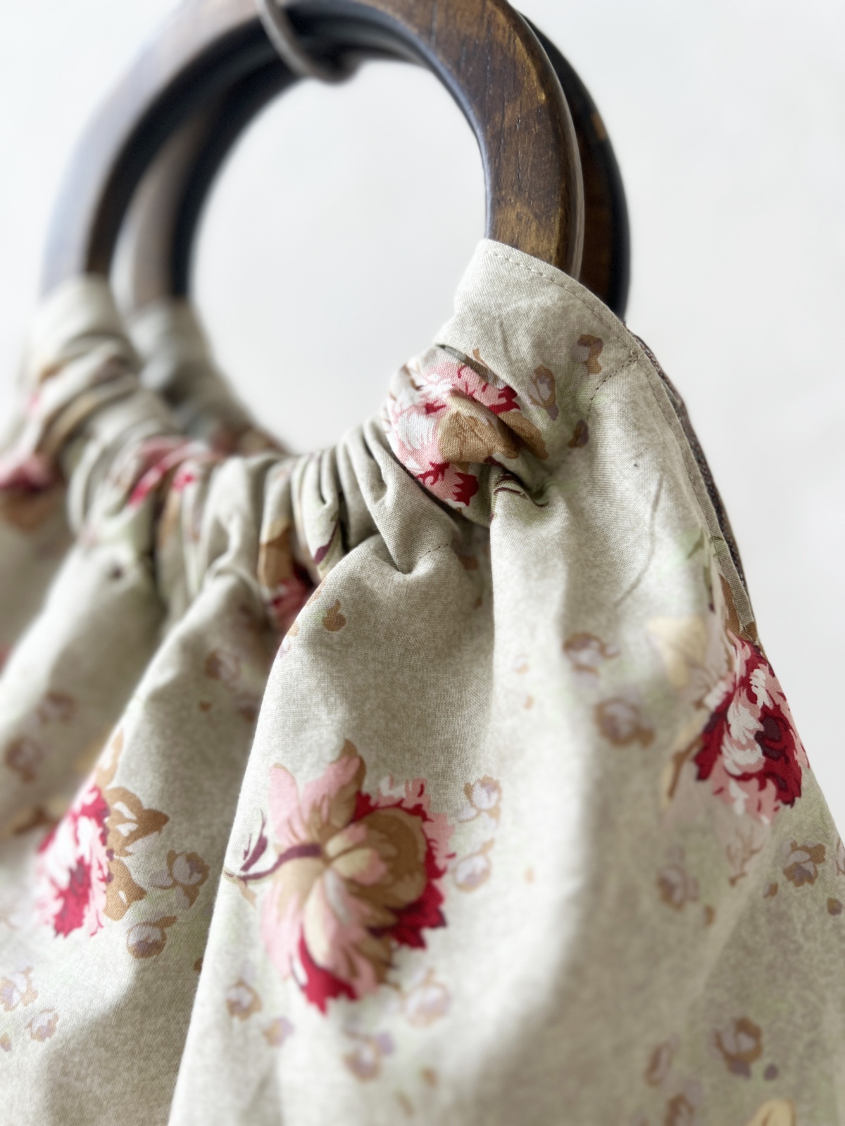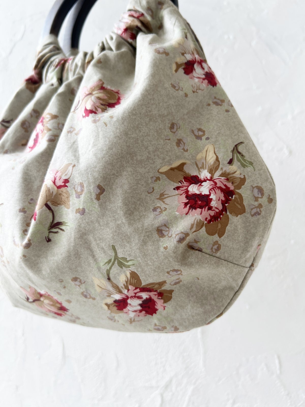 MARCHE' DE SOEUR/木の持ち手バッグ・グレージュピンクローズ