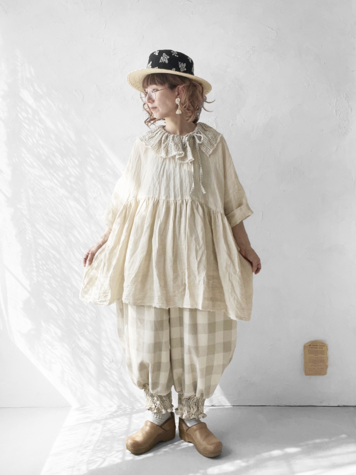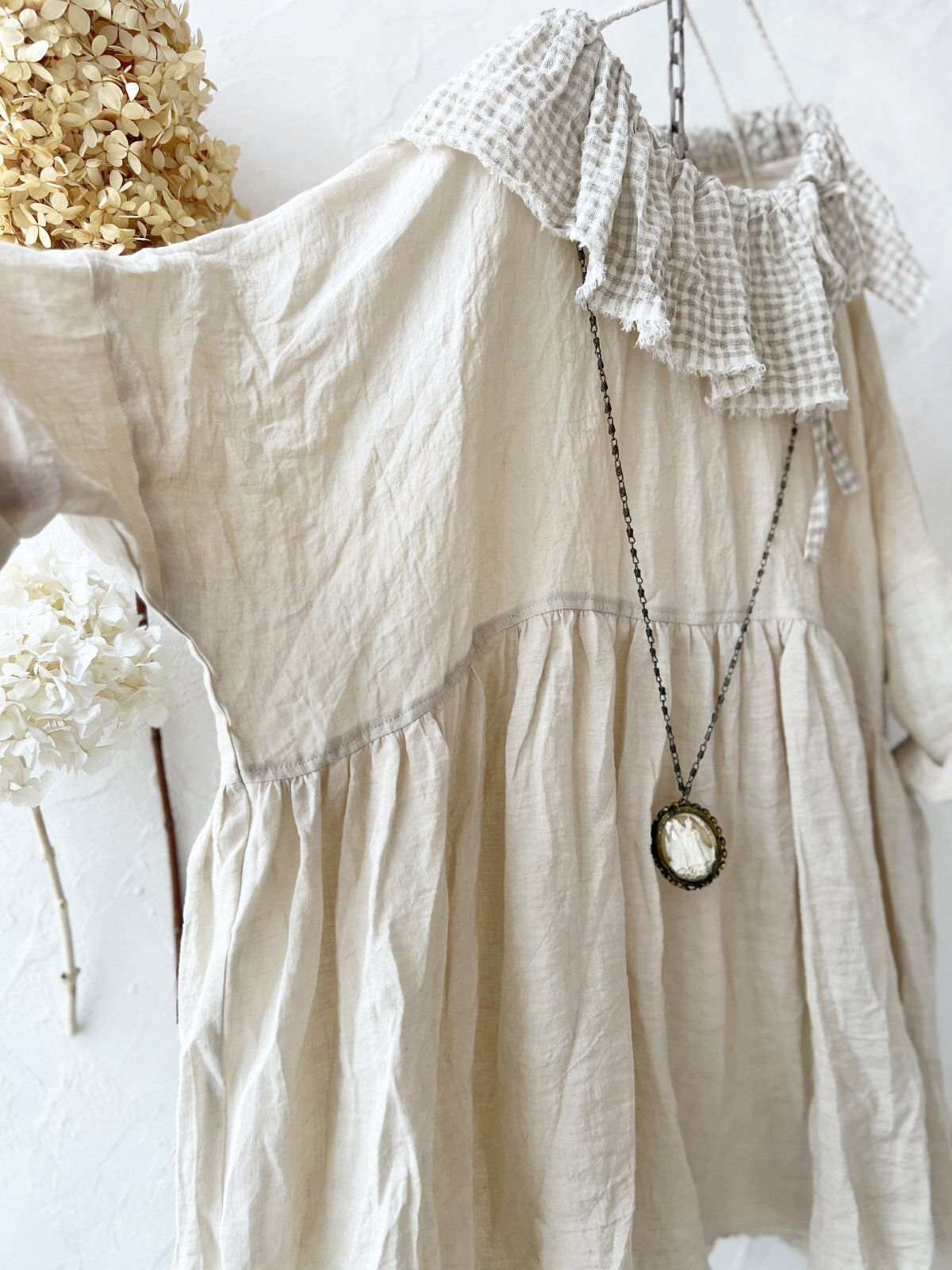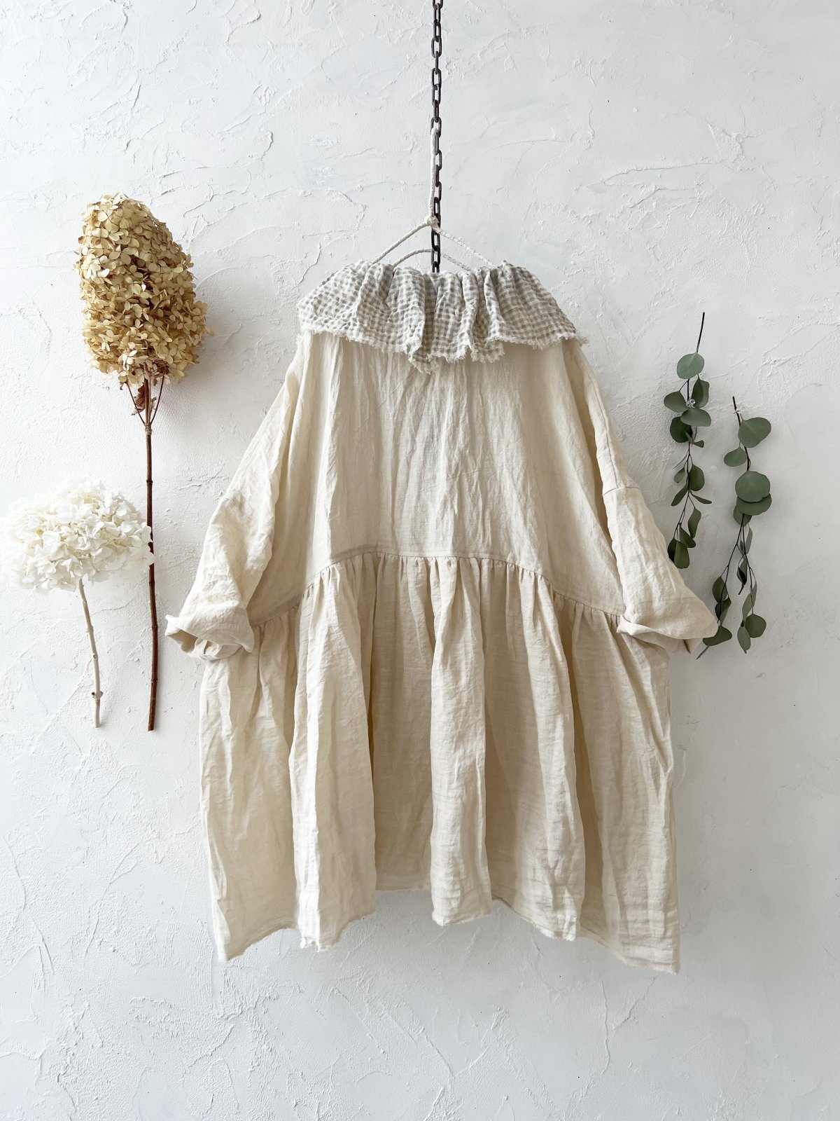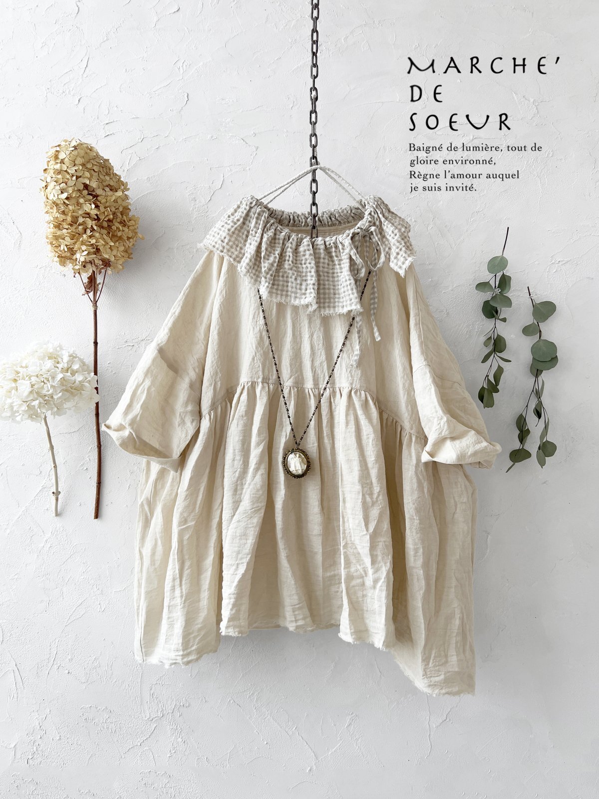 MARCHE' DE SOEUR/大きなラッフル襟のチュニック・ファナージュミルクにワッフルベージュ襟 [MDS260325]