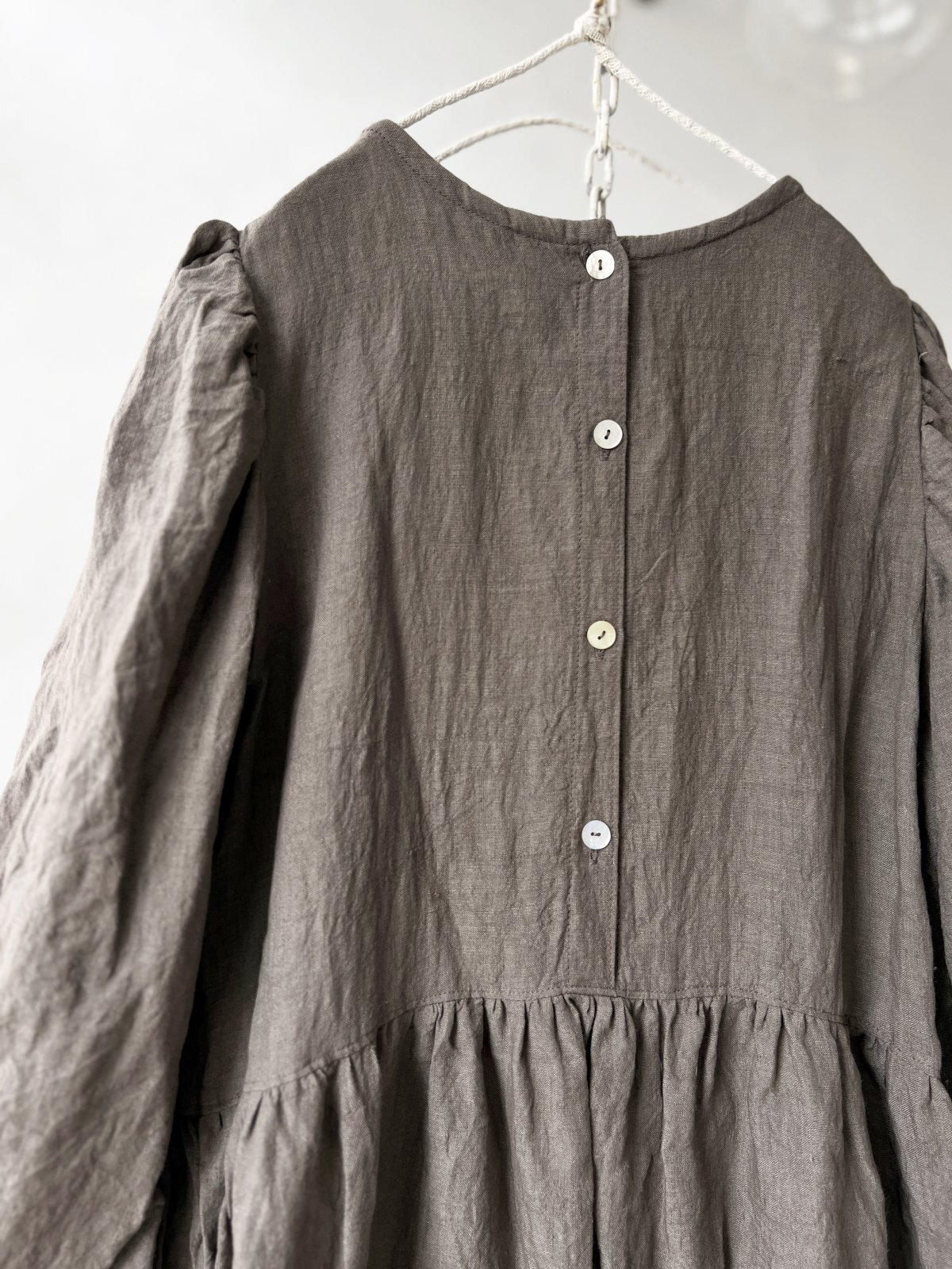 背中はボタンで留めて、佇まいも懐かしく可愛らしく。