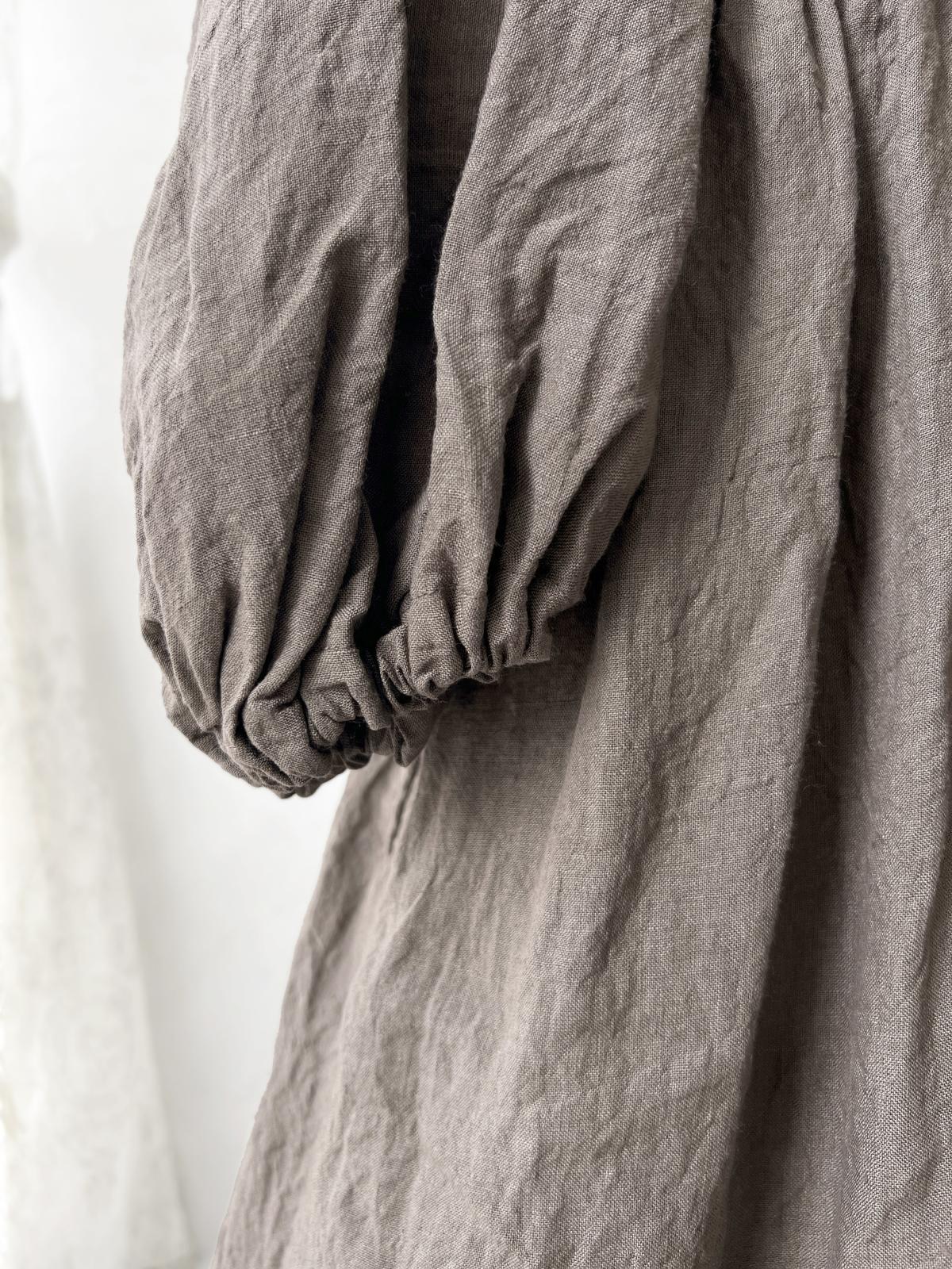 肩からのふっくらpuffで、ボリュームスリーブのワンピース。