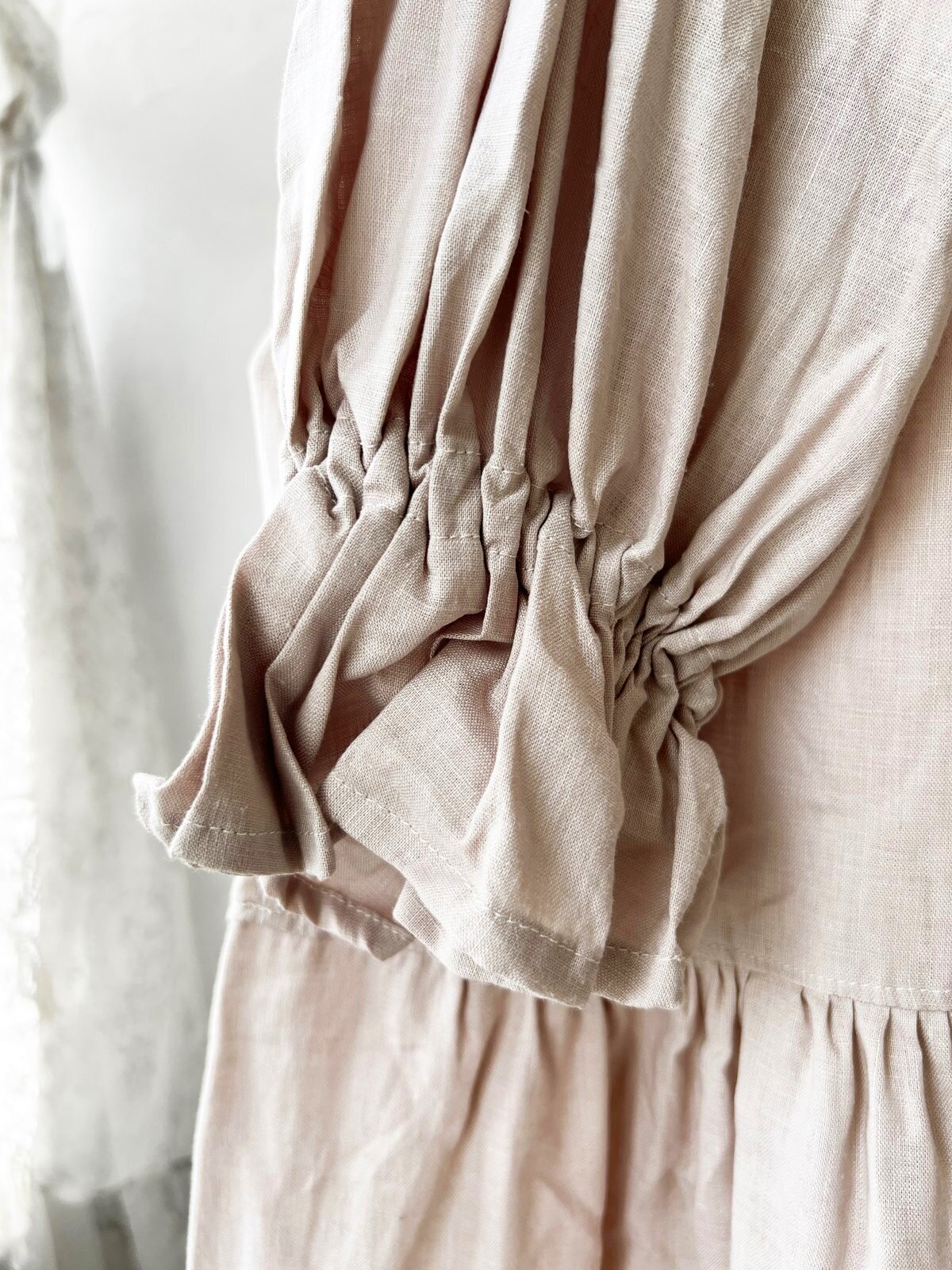 薄手のリネンで、ティアードギャザーが風になびく