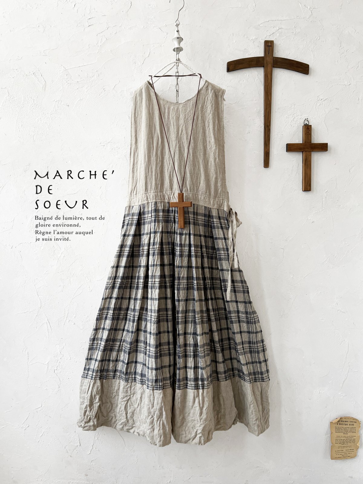 MARCHE' DE SOEUR/エプロンワンピース・生成り×チェック