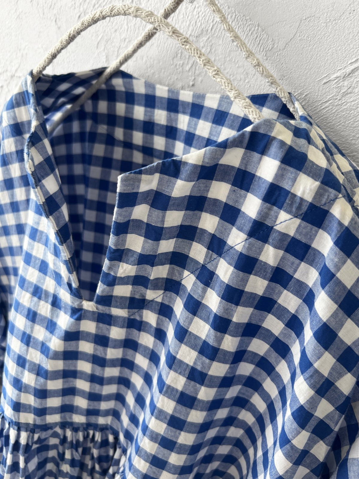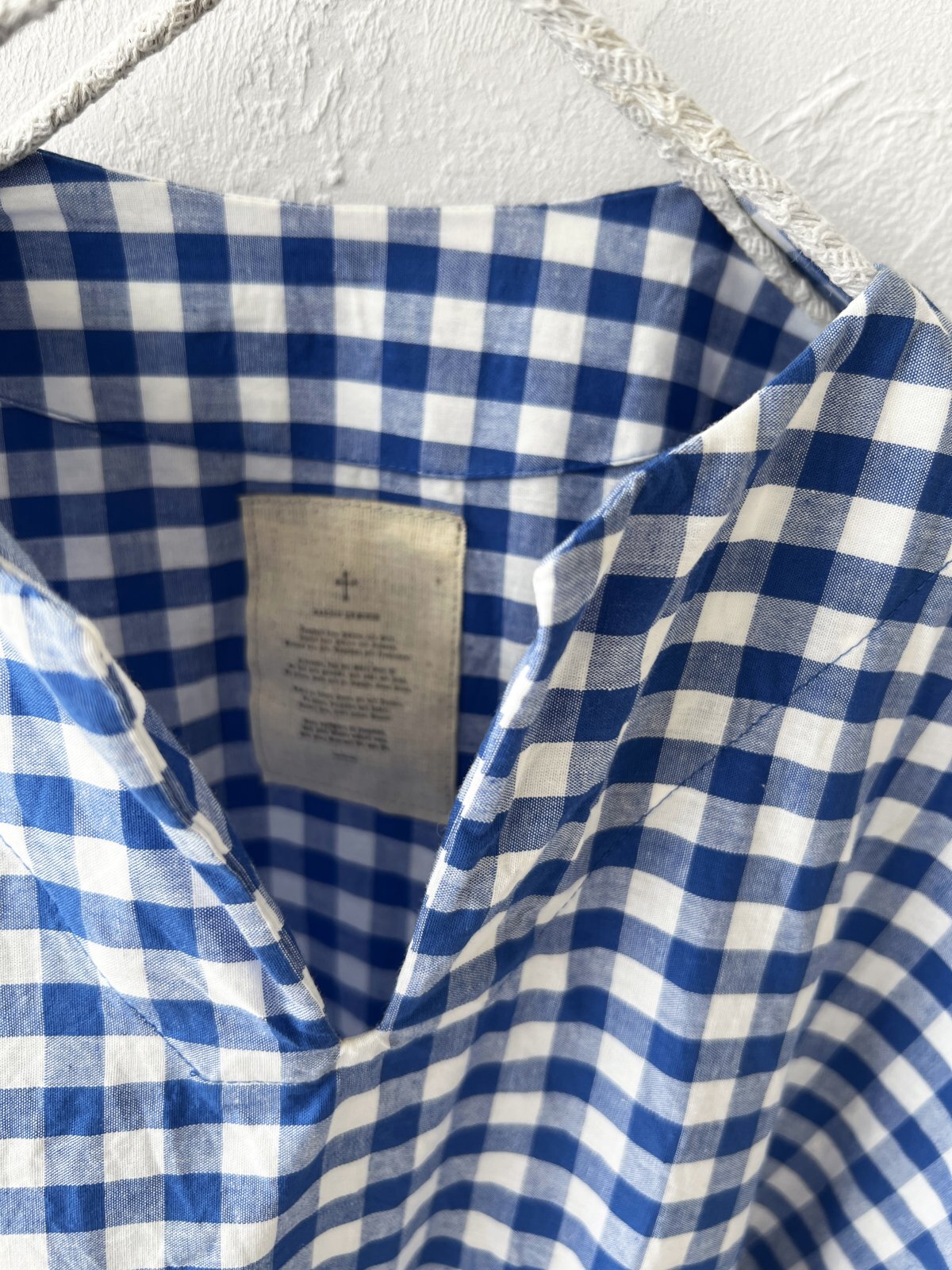 MARCHE' DE SOEUR/スキッパーギャザープルオーバー・青ギンガム [MDS260405]