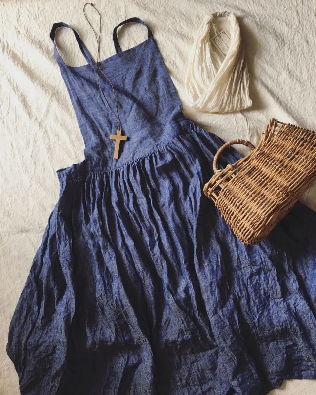 ギャザーたっぷり、ふわくしゅのデニムリネンのエプロン!