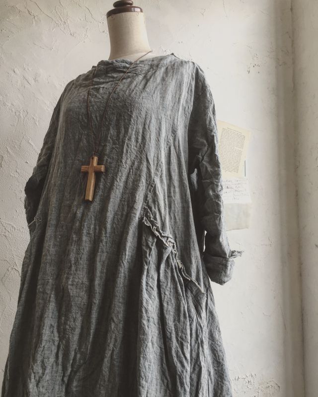 素材:コンチネンタルリネン 100%(グリーンがかったアッシュグレーダンガリーです)