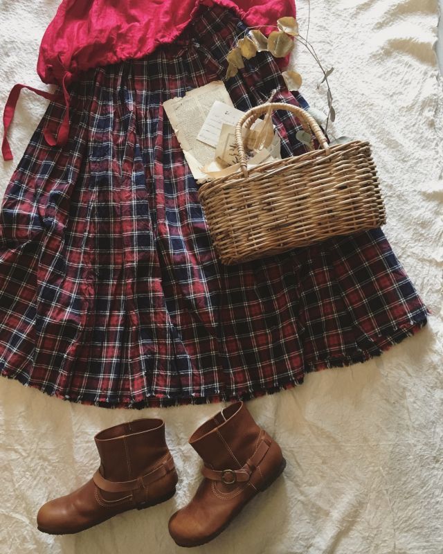 MARCHE' DE SOEUR/赤チェックギャザースカート [POL170917]